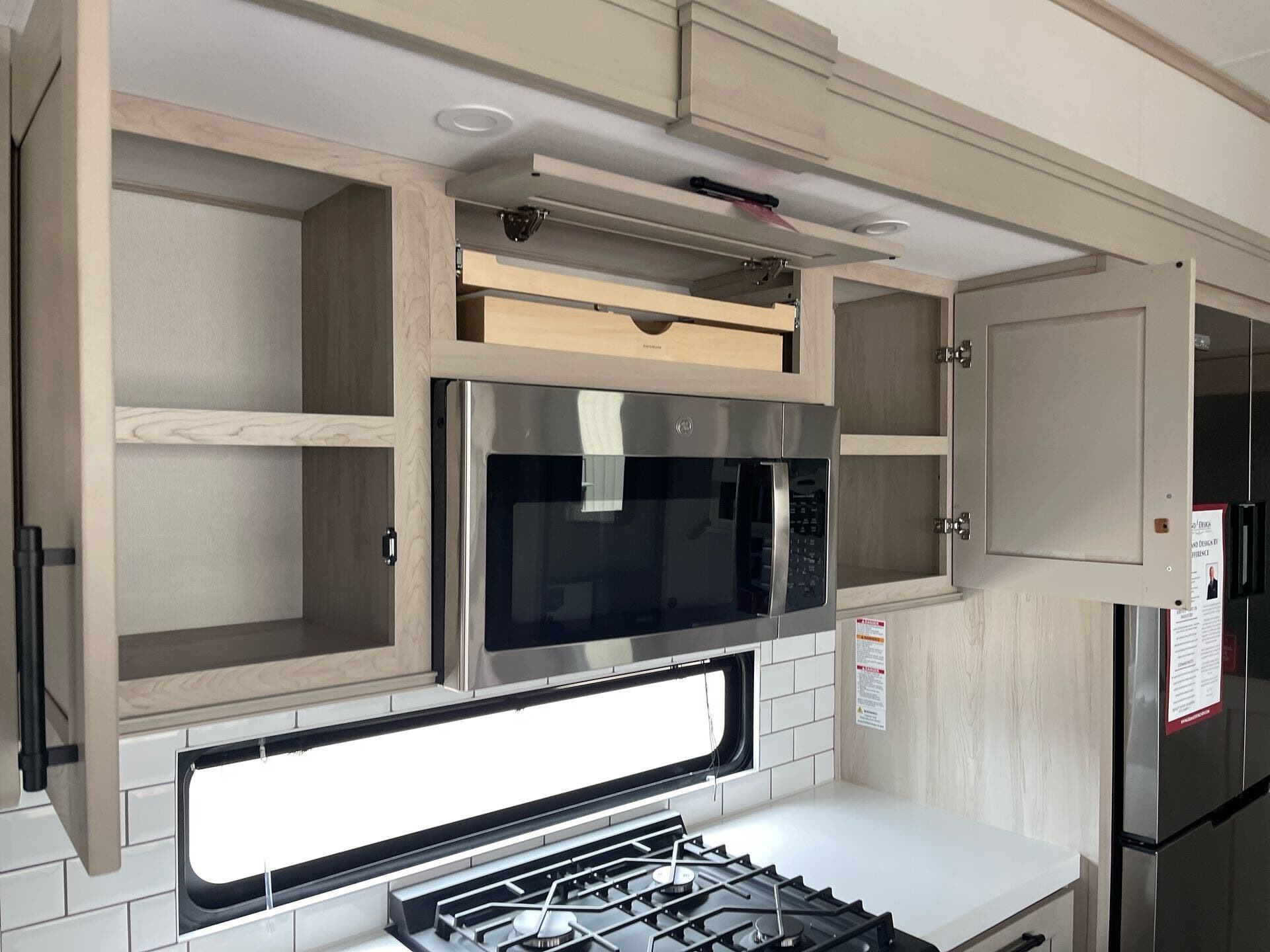 Built on a 101″ wide-body drop-frame chassis with MORryde CRE3000 suspension, heavy-duty axles, dual AC, and 50?A service, it delivers both highway stability and residential comfort. However, some owners report potential quality-control issues like hydraulic and electrical glitches—worth verifying during inspection .