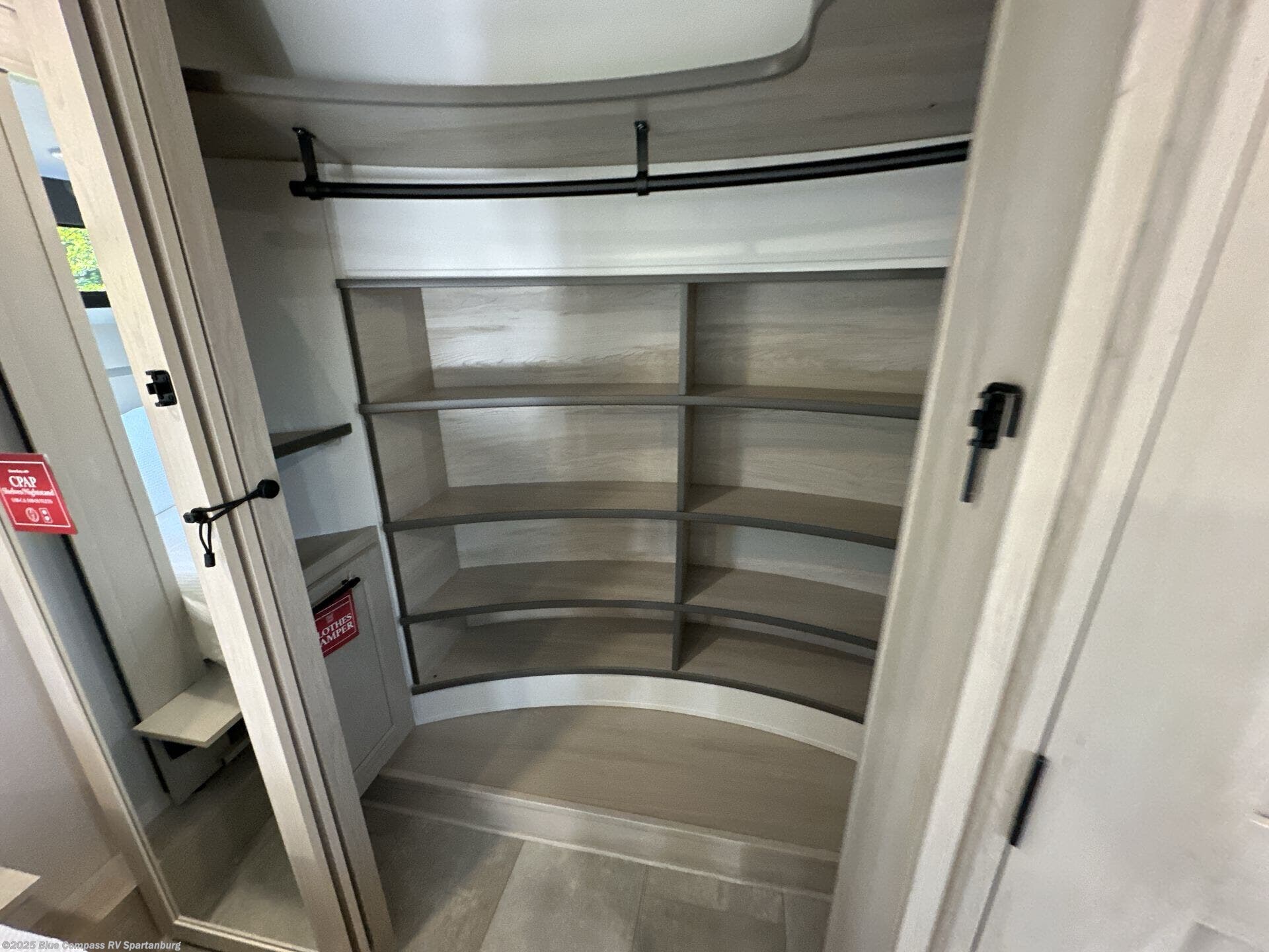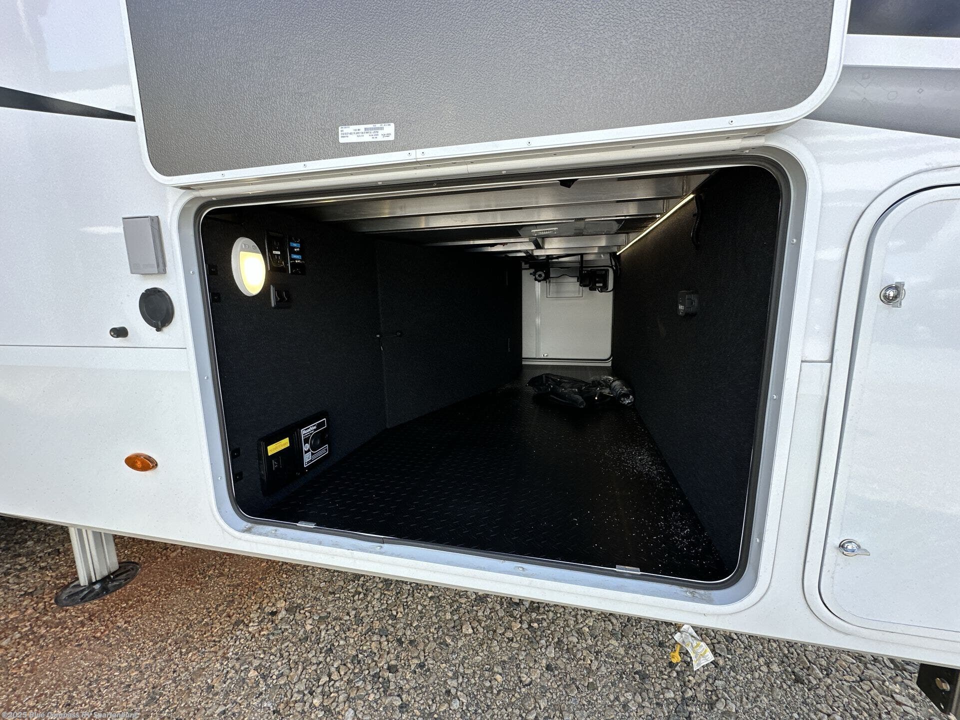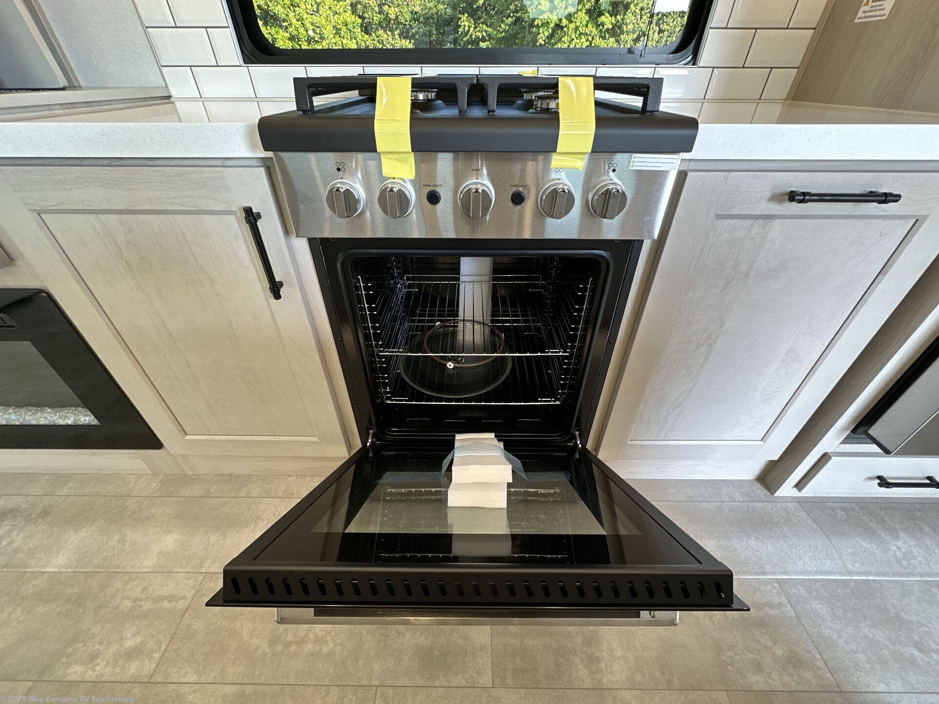 Traveling for long periods at a time is made easy with this gourmet kitchen that can feed your entire group a holiday meal! The professional-grade stainless steel cooktop with a built-in oven, microwave, 12V 20 cu. ft. refrigerator, and a kitchen island offers everything you will need to enjoy cooking for your family and guests. There is abundant storage throughout multiple overhead cabinets, a kitchen pantry and hutch, a bath linen cabinet for your towels, and in the front master bedroom which features a large closet. In the bedroom there is also a queen bed slide for added space to sleep comfortable at night, or you may choose an optional king bed if you enjoy more space. You will also find a closet with washer/dryer prep, large wardrobe, a clothes hamper plus a slide top dresser. Two nice awnings will provide outdoor living space keeping you protected from the sun and rain, and you can add an optional pull-out kitchen to enjoy convenient cooking outdoors as well.