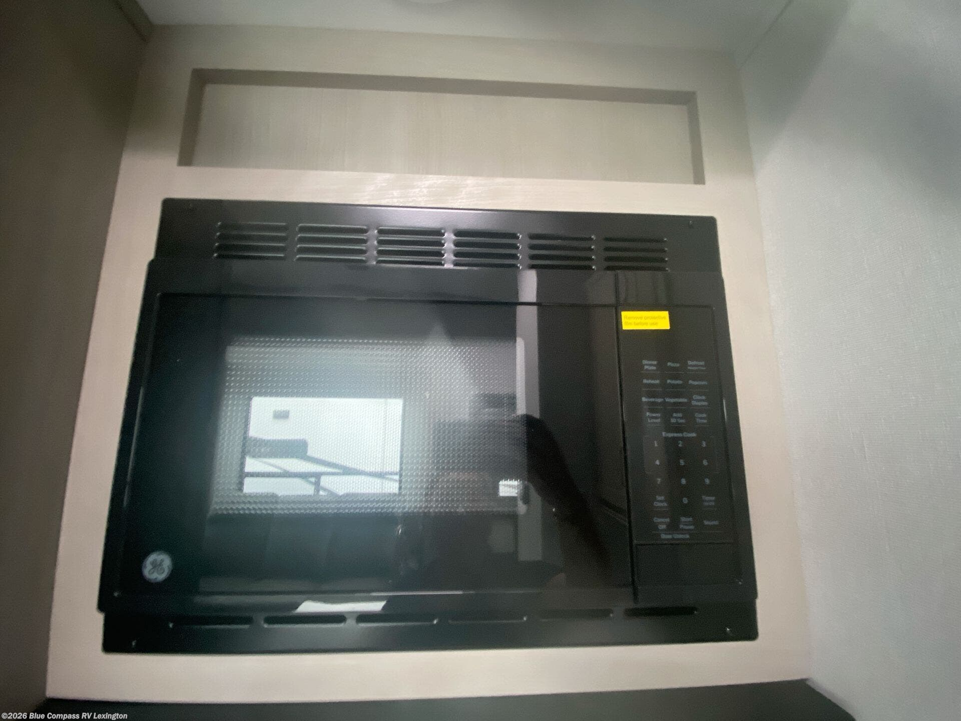 Traveling for long periods at a time is made easy with this gourmet kitchen that can feed your entire group a holiday meal! The professional-grade stainless steel cooktop with a built-in oven, microwave, 12V 20 cu. ft. refrigerator, and a kitchen island offers everything you will need to enjoy cooking for your family and guests. There is abundant storage throughout multiple overhead cabinets, a kitchen pantry and hutch, a bath linen cabinet for your towels, and in the front master bedroom which features a large closet. In the bedroom there is also a queen bed slide for added space to sleep comfortable at night, or you may choose an optional king bed if you enjoy more space. You will also find a closet with washer/dryer prep, large wardrobe, a clothes hamper plus a slide top dresser. Two nice awnings will provide outdoor living space keeping you protected from the sun and rain, and you can add an optional pull-out kitchen to enjoy convenient cooking outdoors as well.