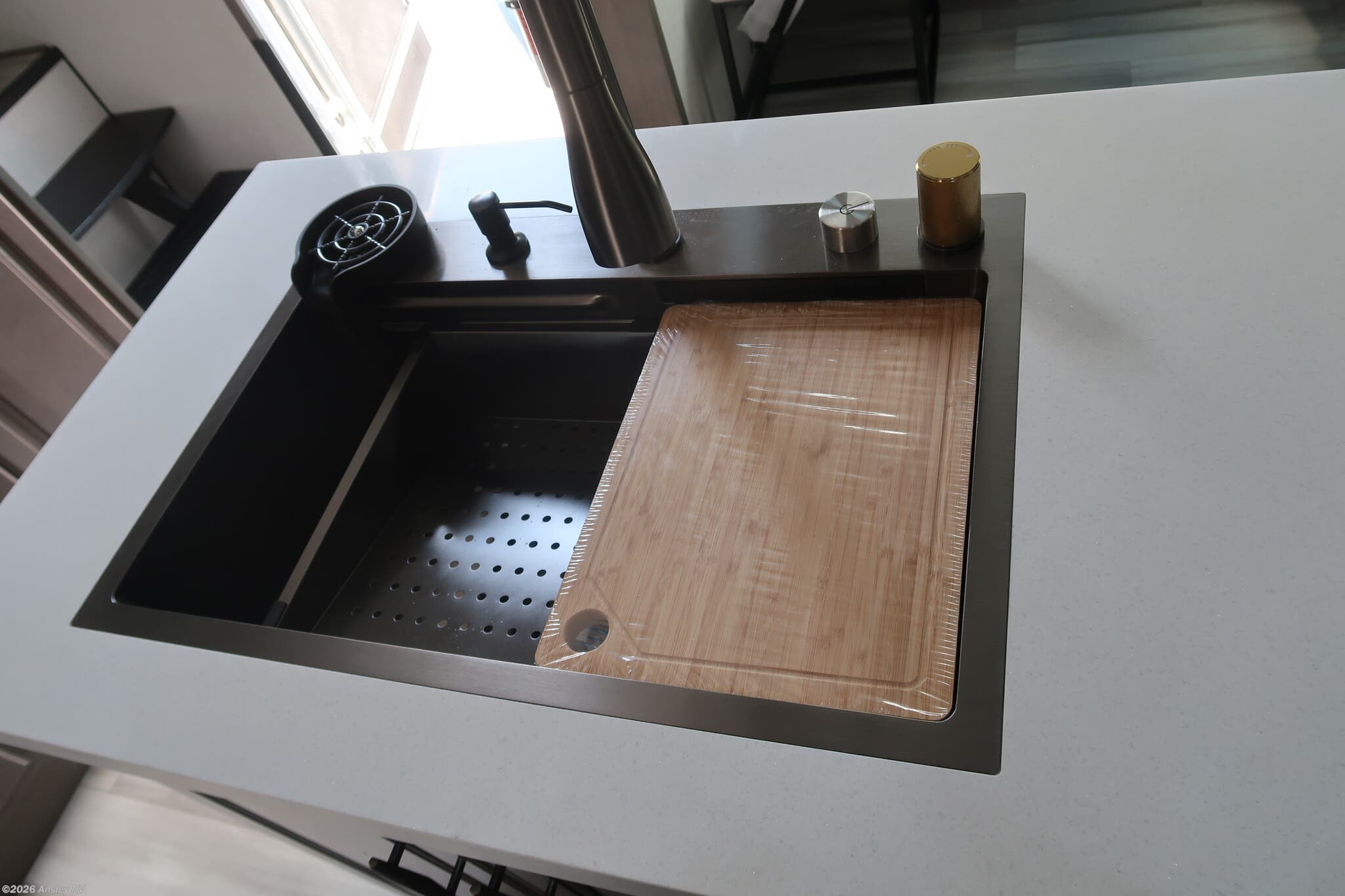 - Smart Sink w/ removeable cutting board, produce strainer and glass rinser