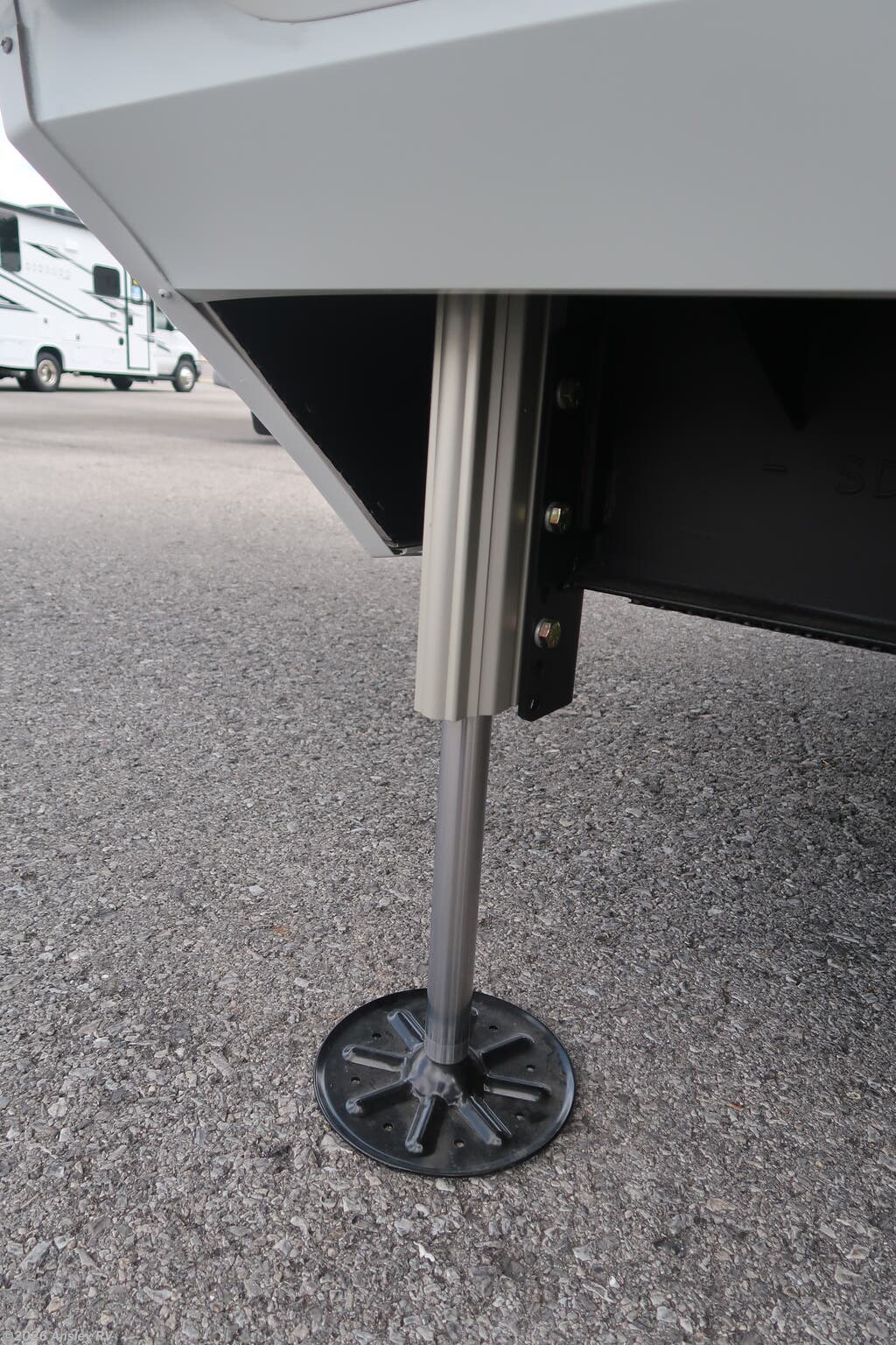 Awning, Exterior Speakers, External Shower, Hitch, Ladder, Leveling Jacks, Power Roof Vent, Skylight, Slideout, Spare Tire Kit -