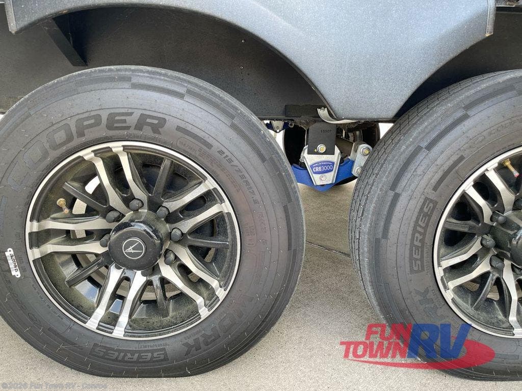 Each Solitude fifth wheel by Grand Design features a 101" wide-body construction, heavy duty 8,000 lb. axles, frameless tinted windows, and high-gloss gel coat sidewalls. You can camp year around thanks to the Weather-Tek Package that includes a 35K BTU high-capacity furnace, an all-in-one enclosed and heated utility center, and a fully enclosed underbelly with heated tanks and storage. Inside, you'll love the premium roller shades, hardwood cabinet doors, solid surface countertops, plus residential finishes throughout to make you truly feel at home. Each model also includes a MORryde CRE3000 suspension system, self adjusting brakes, and a MORryde pin box that will provide smooth towing from home to campground. Affordable luxury is possible with the Solitude fifth wheels; choose yours today!