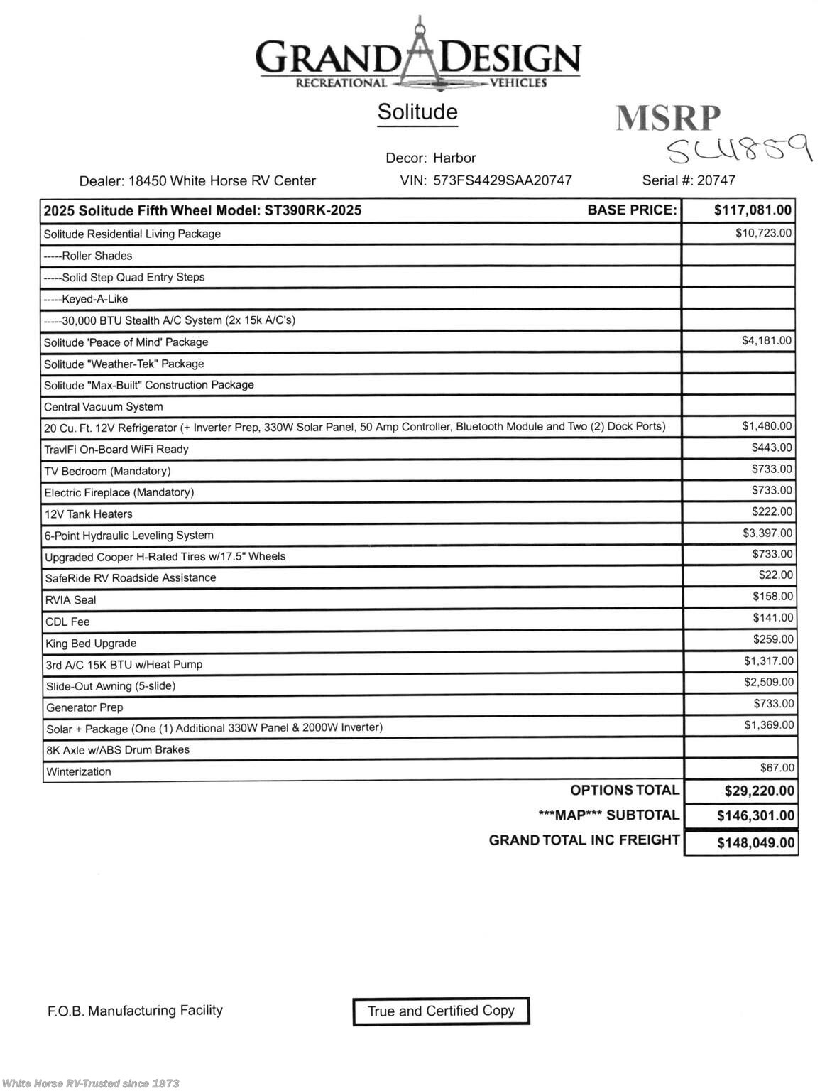 Request More Info on this 2025 Grand Design Solitude 390RK Offered for sale by White Horse RV Center