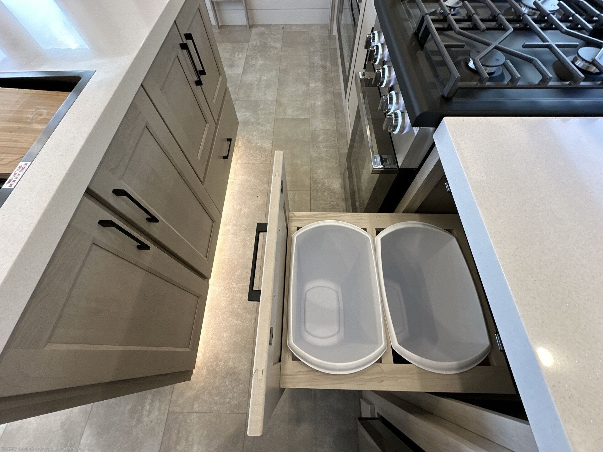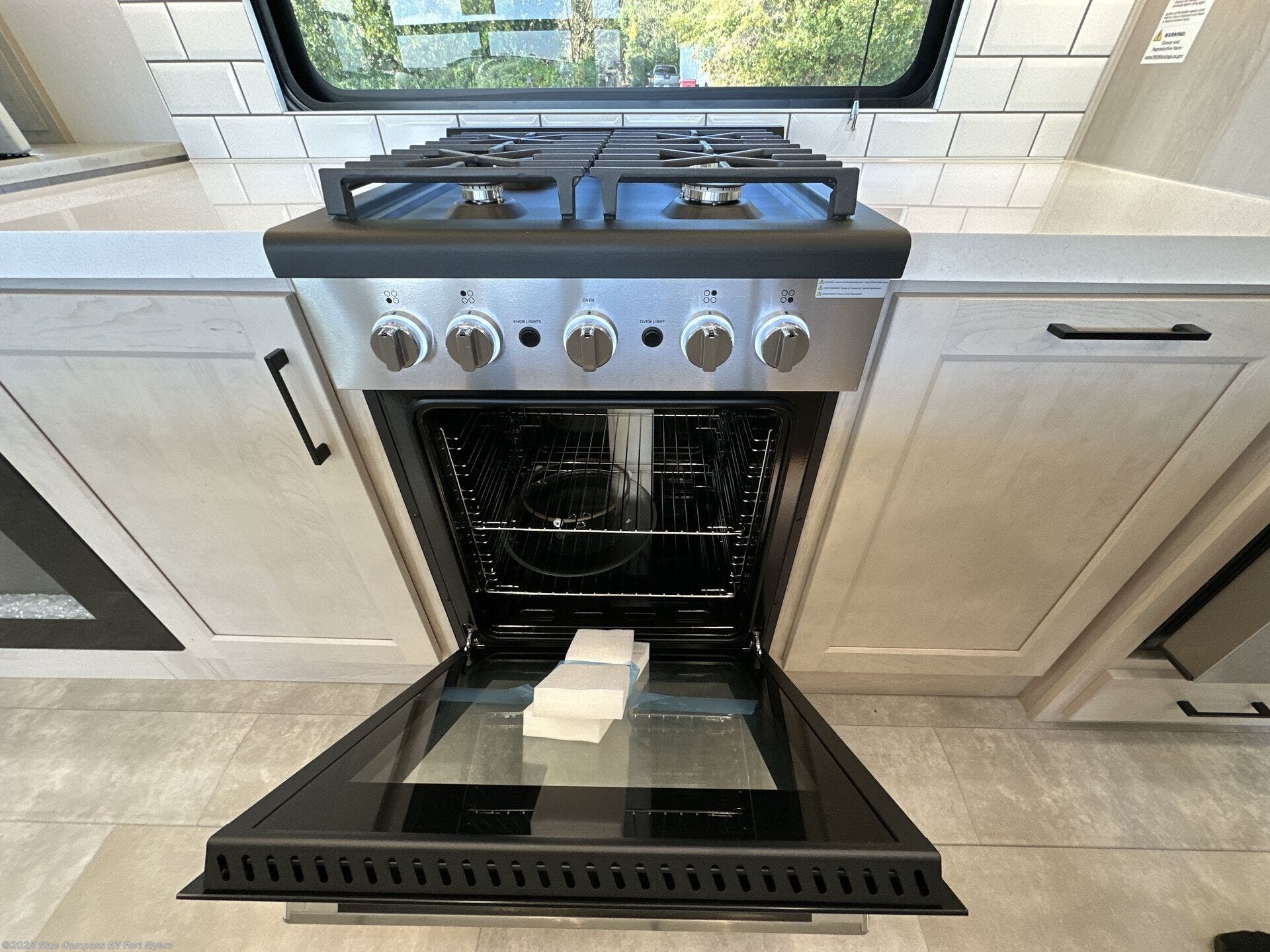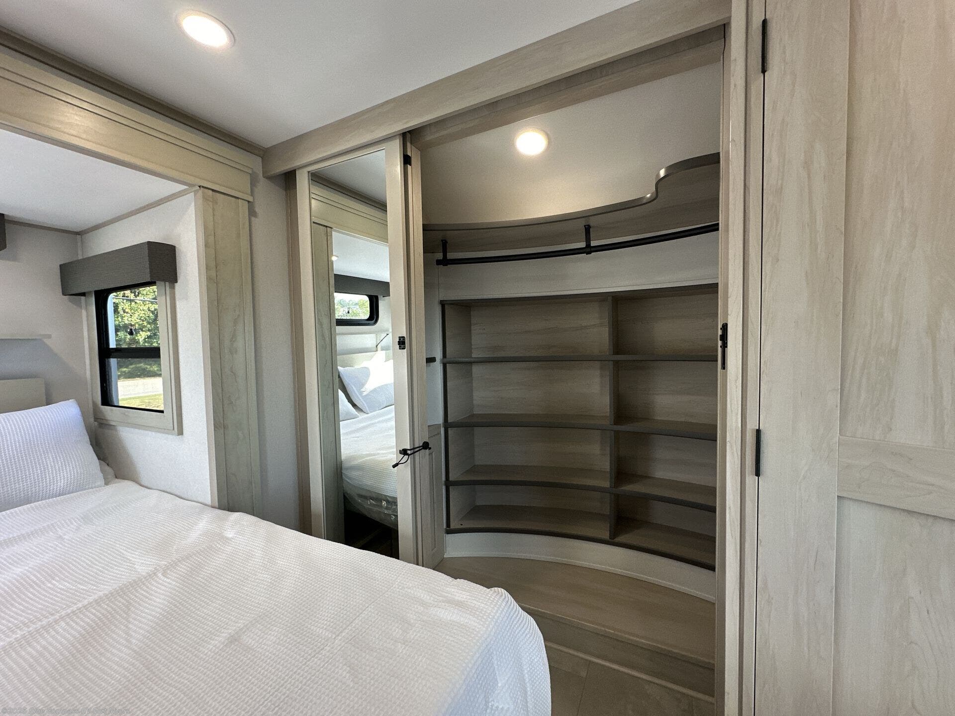 For an affordable luxury extended stay for your family, this Solitude is it! Two private bedrooms plus an overhead Sky Suite loft above the rear bedroom which also has it's own private rear entry/exit door is just the beginning of what is in store for your camping convenience. The upscale kitchen features an island with dishwasher prep, a smart sink, a 12V 20 cu. ft. refrigerator for your perishables, and a built-in oven. There is also a microwave, pantry, and hutch for your dishes, plus a free standing dinette! You can easily take along extra family and friends with the second private bedroom featuring it's own private bath and entry which is great for another couple, and there is even loft space above this rear private bedroom for added storage or sleeping for children. And, you will find ample storage for clothing and belongings throughout with nice size closets, overhead cabinets, plus loads of outside storage.