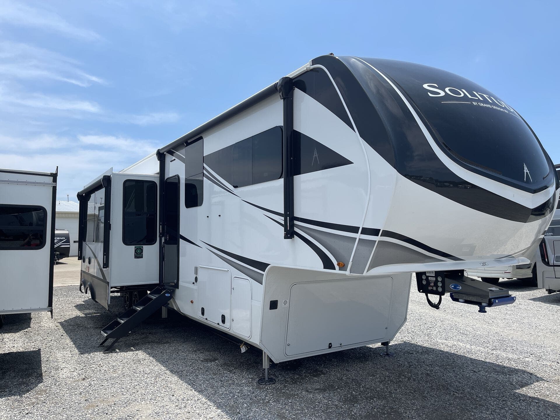 Experience full-time luxury living on the road with the 2025 Grand Design Solitude 391DL, a fifth wheel built for extended stays and unmatched comfort. This spacious double-loft floorplan offers a unique blend of residential features and thoughtful design, with dual upper sleeping lofts perfect for families, guests, or extra storage. From its elegant finishes to its massive living space, the 391DL redefines what it means to feel at home while traveling.