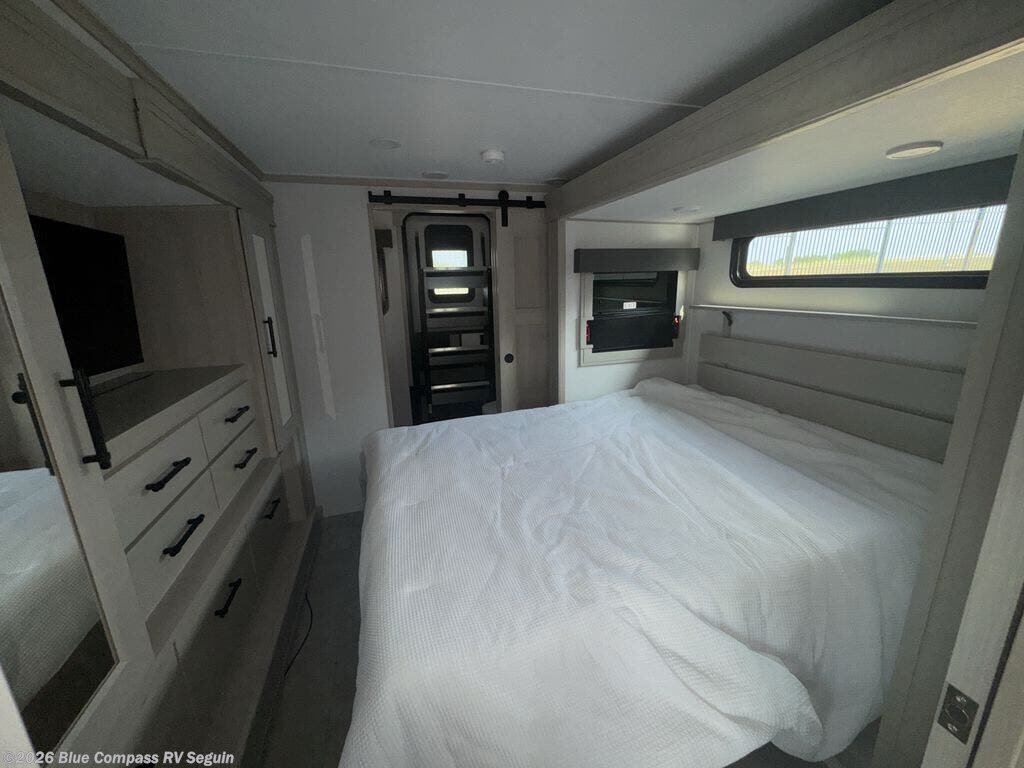 For an affordable luxury extended stay for your family, this Solitude is it! Two private bedrooms plus an overhead Sky Suite loft above the rear bedroom which also has it's own private rear entry/exit door is just the beginning of what is in store for your camping convenience. The upscale kitchen features an island with dishwasher prep, a smart sink, a 12V 20 cu. ft. refrigerator for your perishables, and a built-in oven. There is also a microwave, pantry, and hutch for your dishes, plus a free standing dinette! You can easily take along extra family and friends with the second private bedroom featuring it's own private bath and entry which is great for another couple, and there is even loft space above this rear private bedroom for added storage or sleeping for children. And, you will find ample storage for clothing and belongings throughout with nice size closets, overhead cabinets, plus loads of outside storage.
