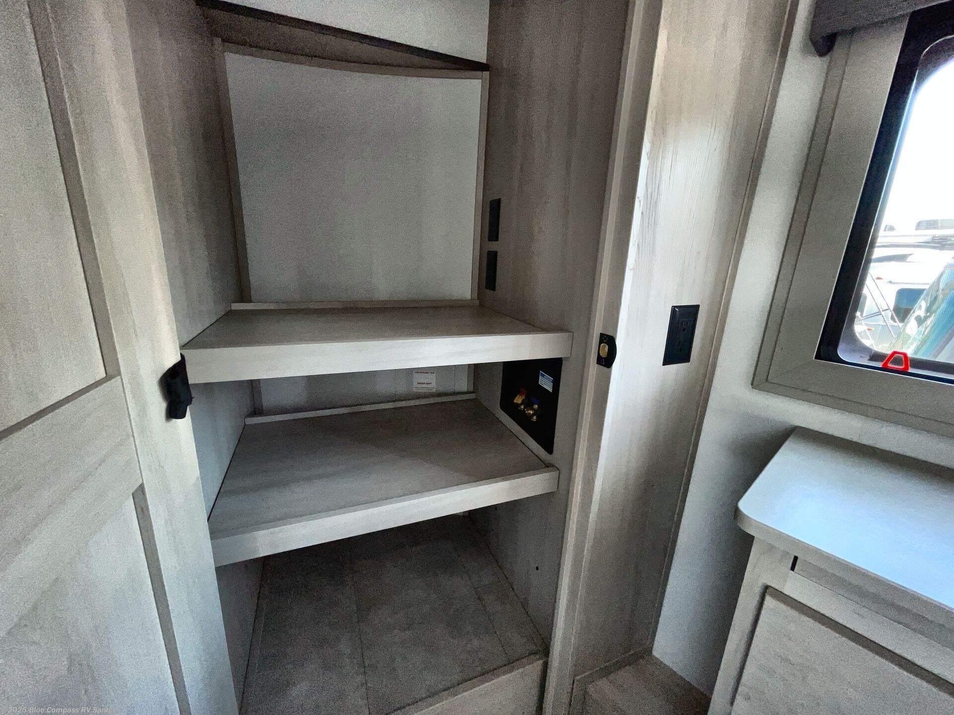 For an affordable luxury extended stay for your family, this Solitude is it! Two private bedrooms plus an overhead Sky Suite loft above the rear bedroom which also has it's own private rear entry/exit door is just the beginning of what is in store for your camping convenience. The upscale kitchen features an island with dishwasher prep, a smart sink, a 12V 20 cu. ft. refrigerator for your perishables, and a built-in oven. There is also a microwave, pantry, and hutch for your dishes, plus a free standing dinette! You can easily take along extra family and friends with the second private bedroom featuring it's own private bath and entry which is great for another couple, and there is even loft space above this rear private bedroom for added storage or sleeping for children. And, you will find ample storage for clothing and belongings throughout with nice size closets, overhead cabinets, plus loads of outside storage.