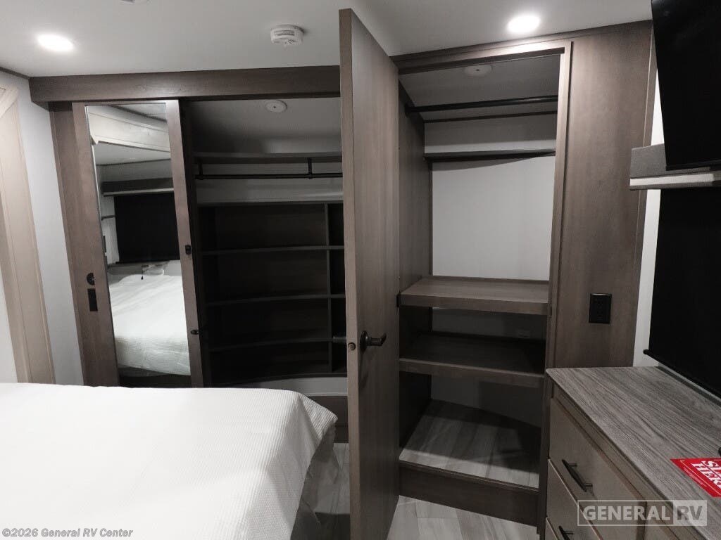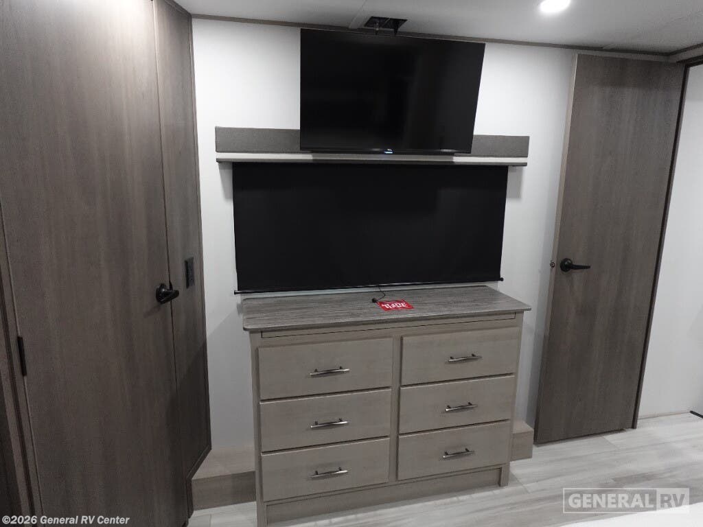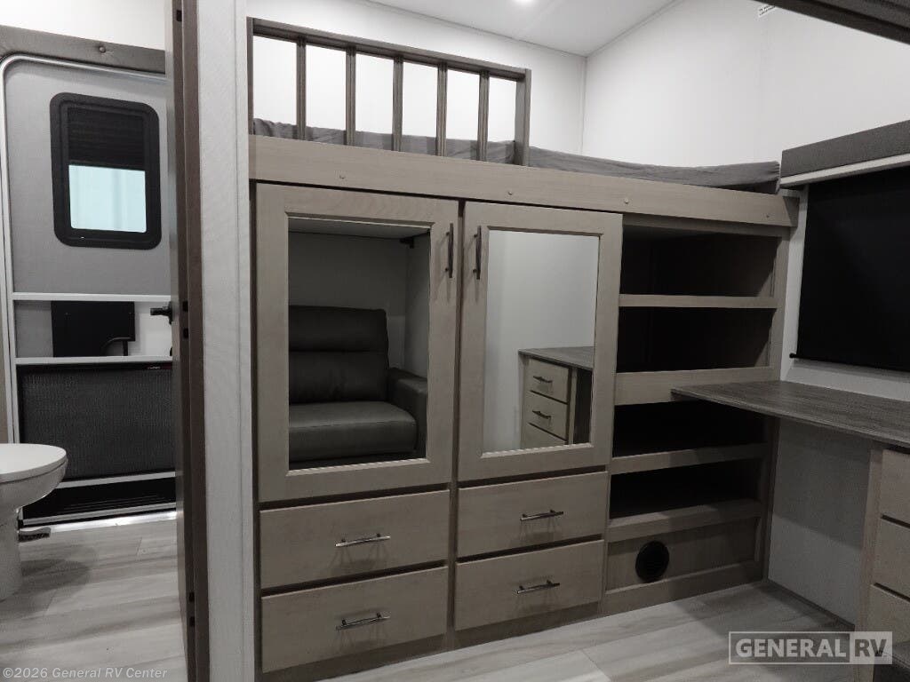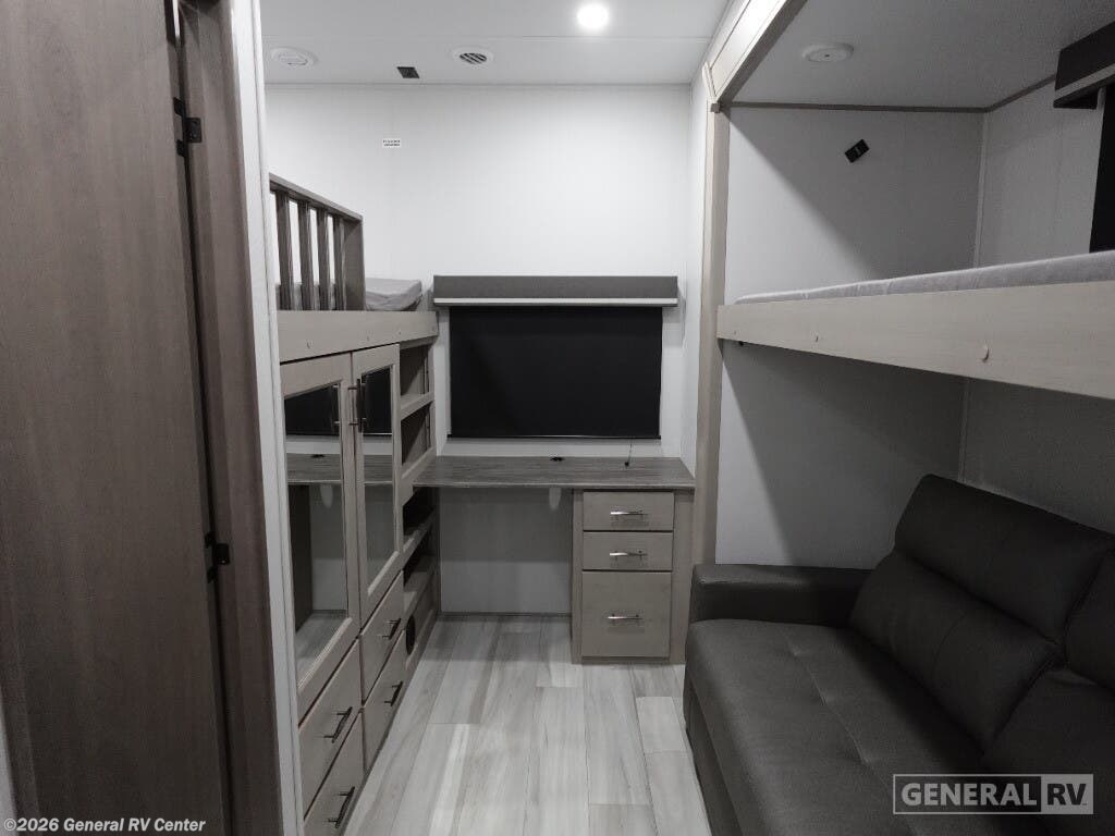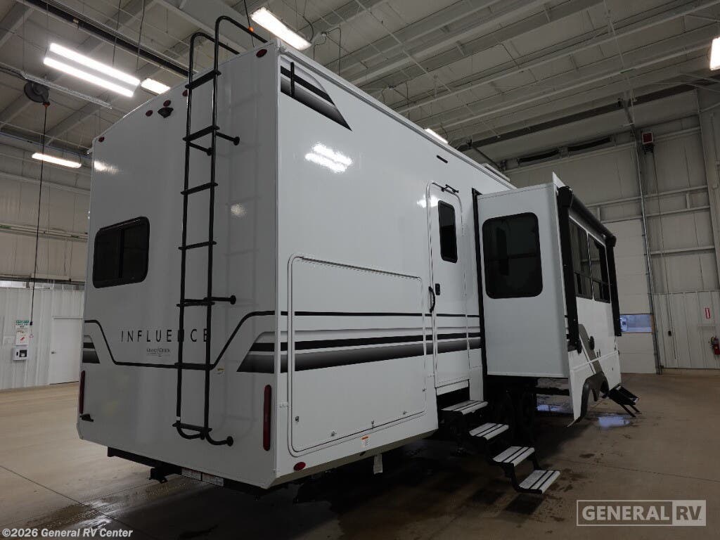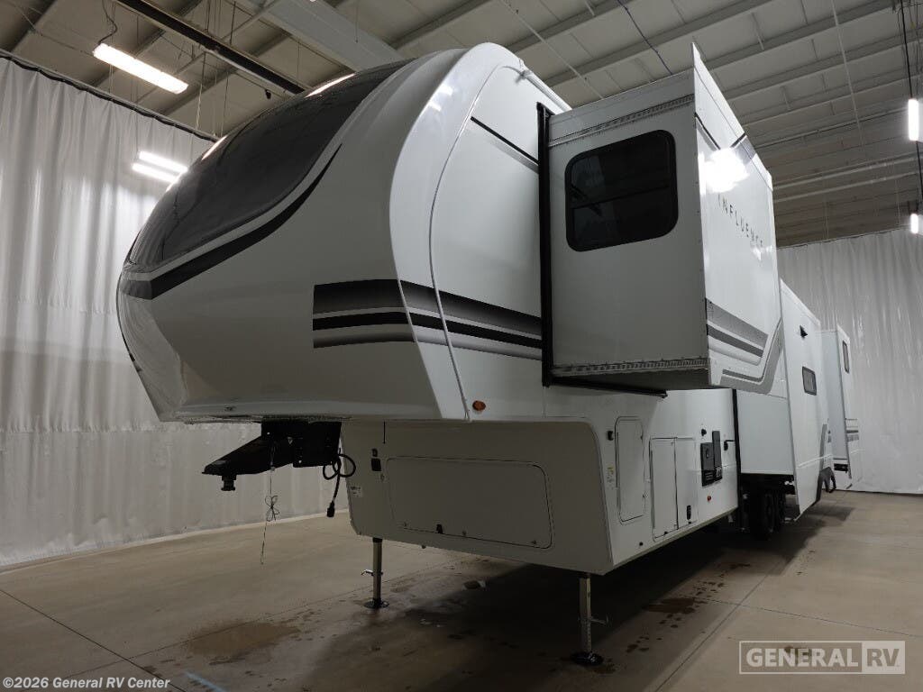 Experience the ultimate in luxury travel with the 2025 Grand Design Influence 3704BH. This stunning RV is designed to offer both comfort and style, making it the perfect choice for family adventures or a cozy getaway. With a spacious layout featuring four slides, this model provides ample room for relaxation and entertainment. The center kitchen is equipped with a full-size refrigerator and a three-burner cooktop, ensuring you have everything you need to whip up delicious meals on the road. Enjoy your culinary creations in the elegant free-standing dinette, or take the party outside under the expansive 24.8 ft. powered retractable awning. The Influence 3704BH is thoughtfully designed with sleeping accommodations for up to six guests, including a luxurious king bed and a queen bed, plus additional bunks for the kids. The center living area boasts theater seating, perfect for unwinding with your favorite shows on the entertainment center. The RV is prepped for a washer and dryer, adding convenience for extended trips. With ample storage, including pass-through compartments, and a robust fresh water capacity of 81 gallons, this RV is ready for any adventure. Visit your nearest General RV Dealership to explore this remarkable model in person and start your journey today.
