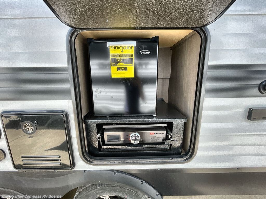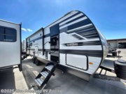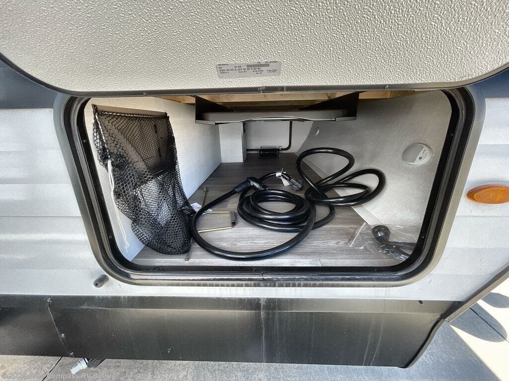 the amount of interior space you have in the living area thanks to the U-shaped dinette slide, which can be switched out for optional theater seats. The rear 70" sleeper sofa will be perfect for guests to sleep on, and the 32" TV lets you enjoy movie nights. There is a three burner range and convection microwave/combo air fryer to cook meals inside, or you can cook on the exterior griddle with a 1.7 cu. ft. refrigerator. And the 17' power awning will provide much wanted shade as you visit with friends. Back inside, the walk-thru bath is both spacious and convenient since it can be accessed from the main living area and the front master bedroom. Here, you'll find a queen bed, storage space, plus TV prep if you want to add a television. You even have your own exterior entry door for convenience!