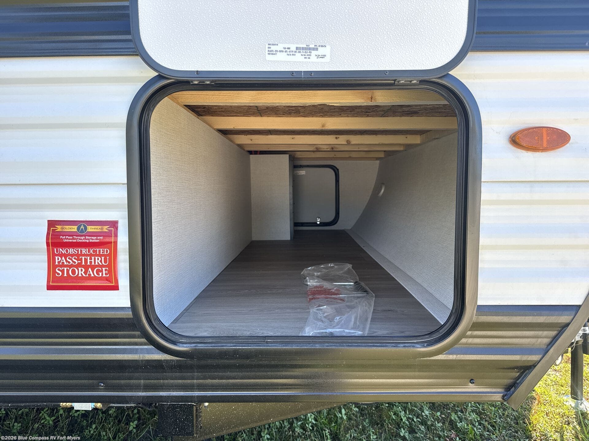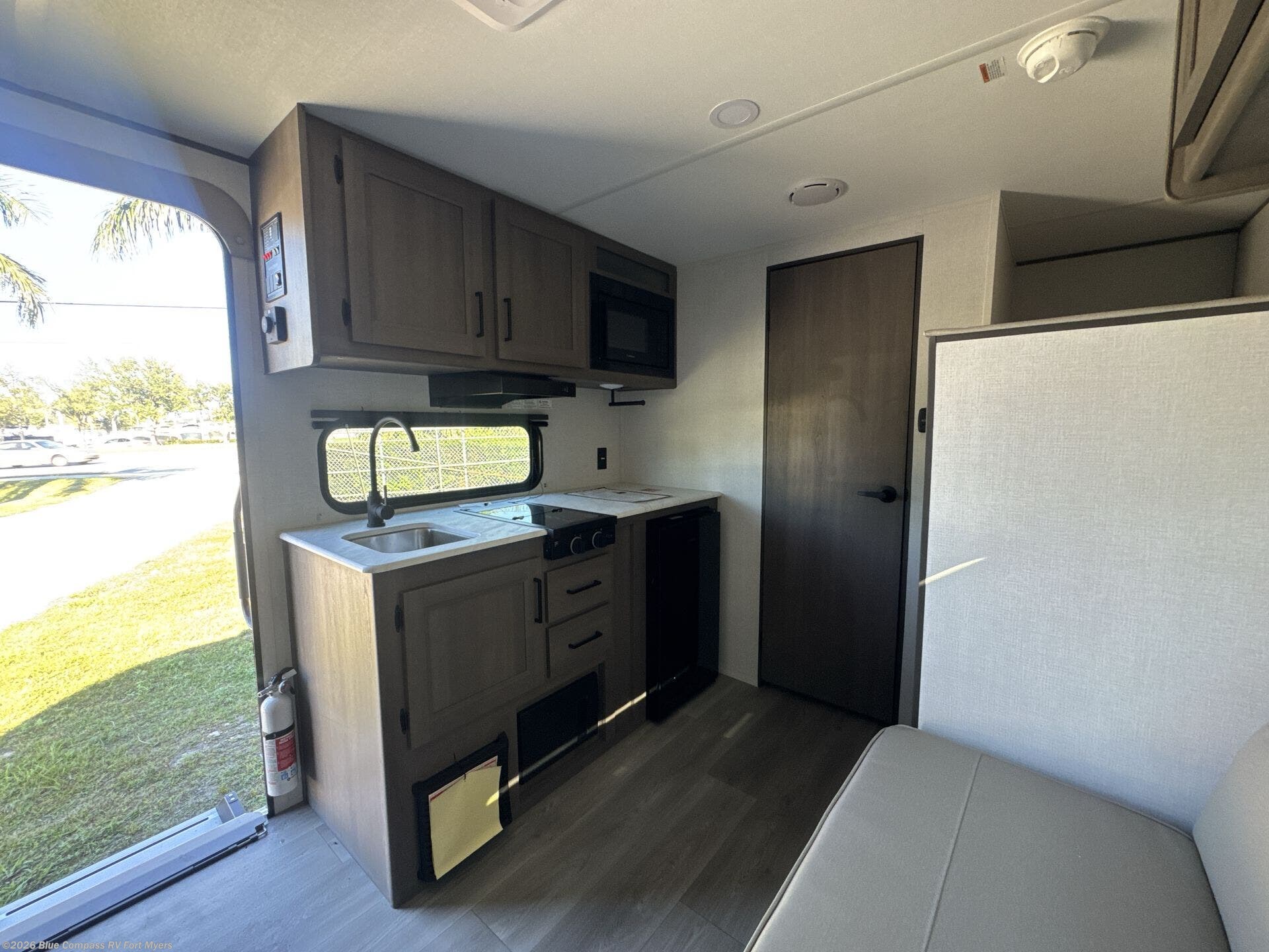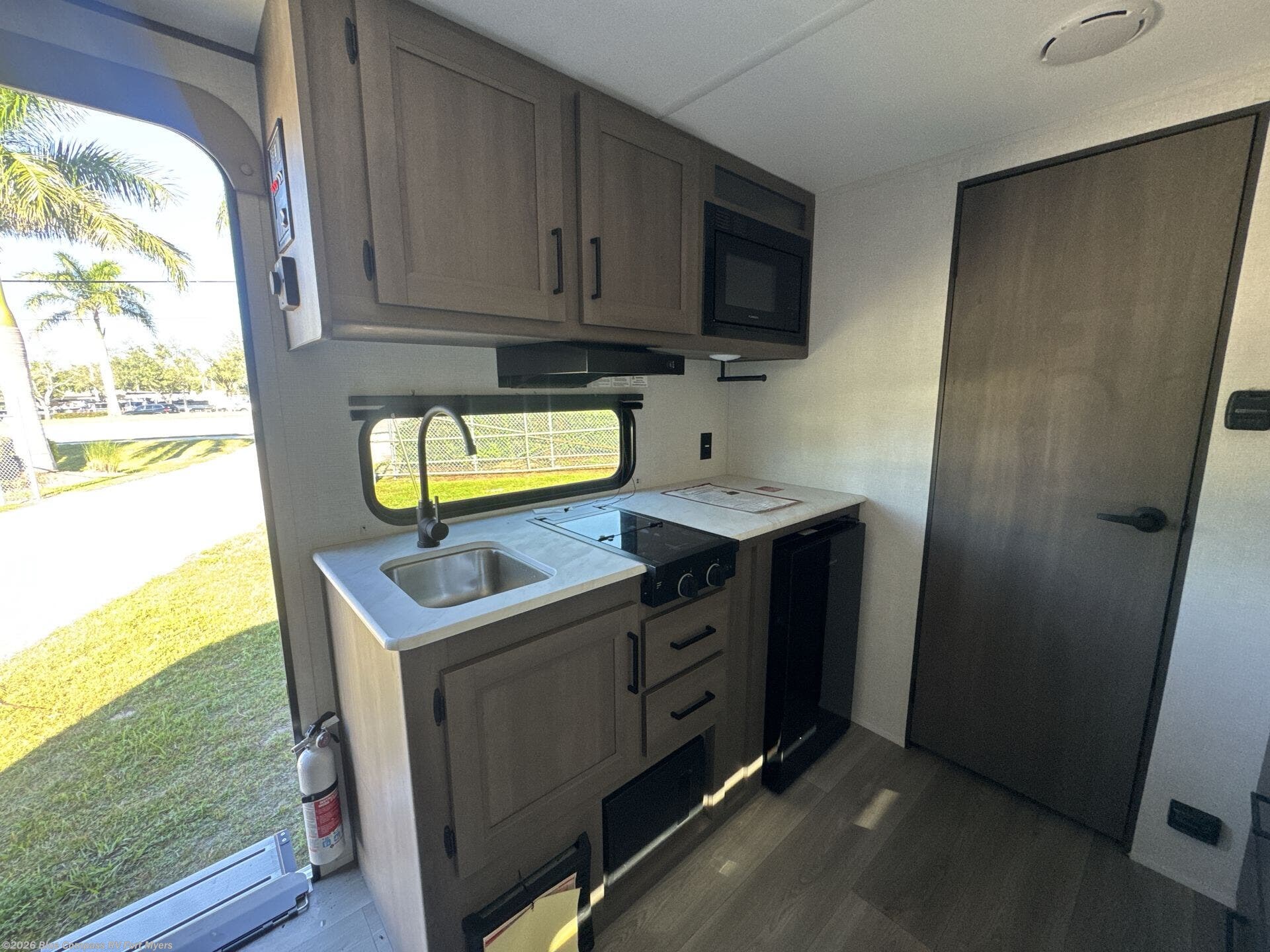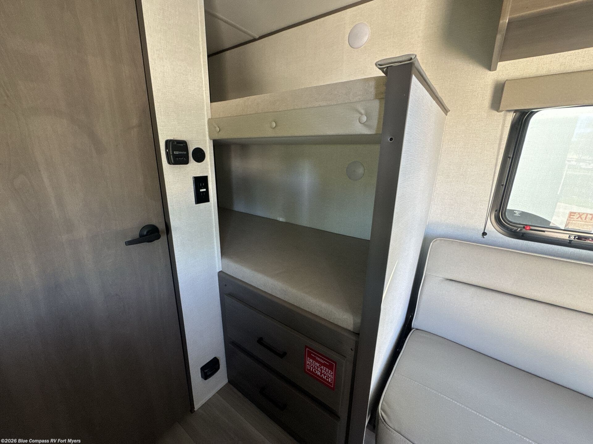 Camping trips to the lake have never been easier than with this travel trailer! The 28" x 67" bunks are right next to the private bath for easy nighttime use, and the front queen bed includes hidden storage for your things. There is also a 66" Jack knife sofa that provides a little more sleeping space for guests. A full kitchen lets you cook meals each day and there is an exterior LP quick connect if you want to fire up your own propane grill.
