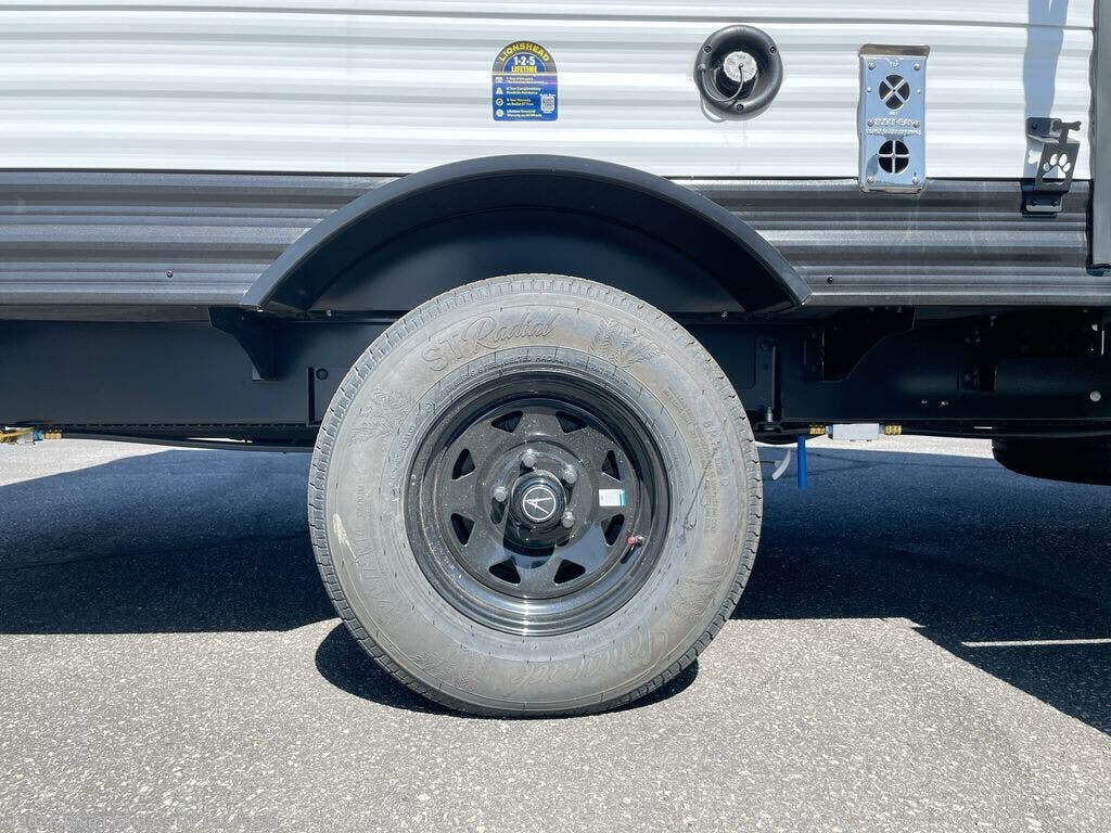 Camping trips to the lake have never been easier than with this travel trailer! The 28" x 67" bunks are right next to the private bath for easy nighttime use, and the front queen bed includes hidden storage for your things. There is also a 66" Jack knife sofa that provides a little more sleeping space for guests. A full kitchen lets you cook meals each day and there is an exterior LP quick connect if you want to fire up your own propane grill.