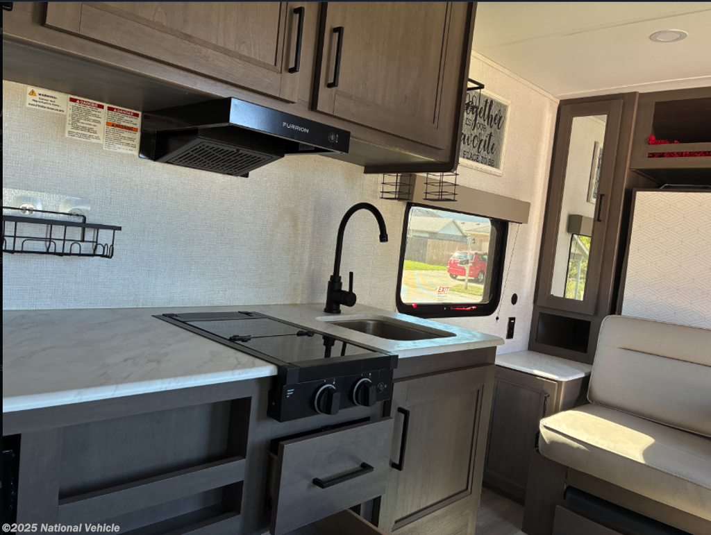 You?ll appreciate the modern finishes and rugged comfort throughout: a two?burner range, refrigerator, and efficient roof?mounted air conditioner paired with a high?capacity furnace. The 37?gallon fresh, gray, and black tank capacities make overnights easier, and the 6?gallon gas/electric water heater gives you choice of power in remote spots. Outside the trailer a 10?foot power awning with LED lighting, solid frame, stained windows, and insulated underbelly protect and expand your camping lifestyle. From weekend escapes to off?grid retreats, the 151RB delivers big?feature comfort in a nimble, well?crafted package.