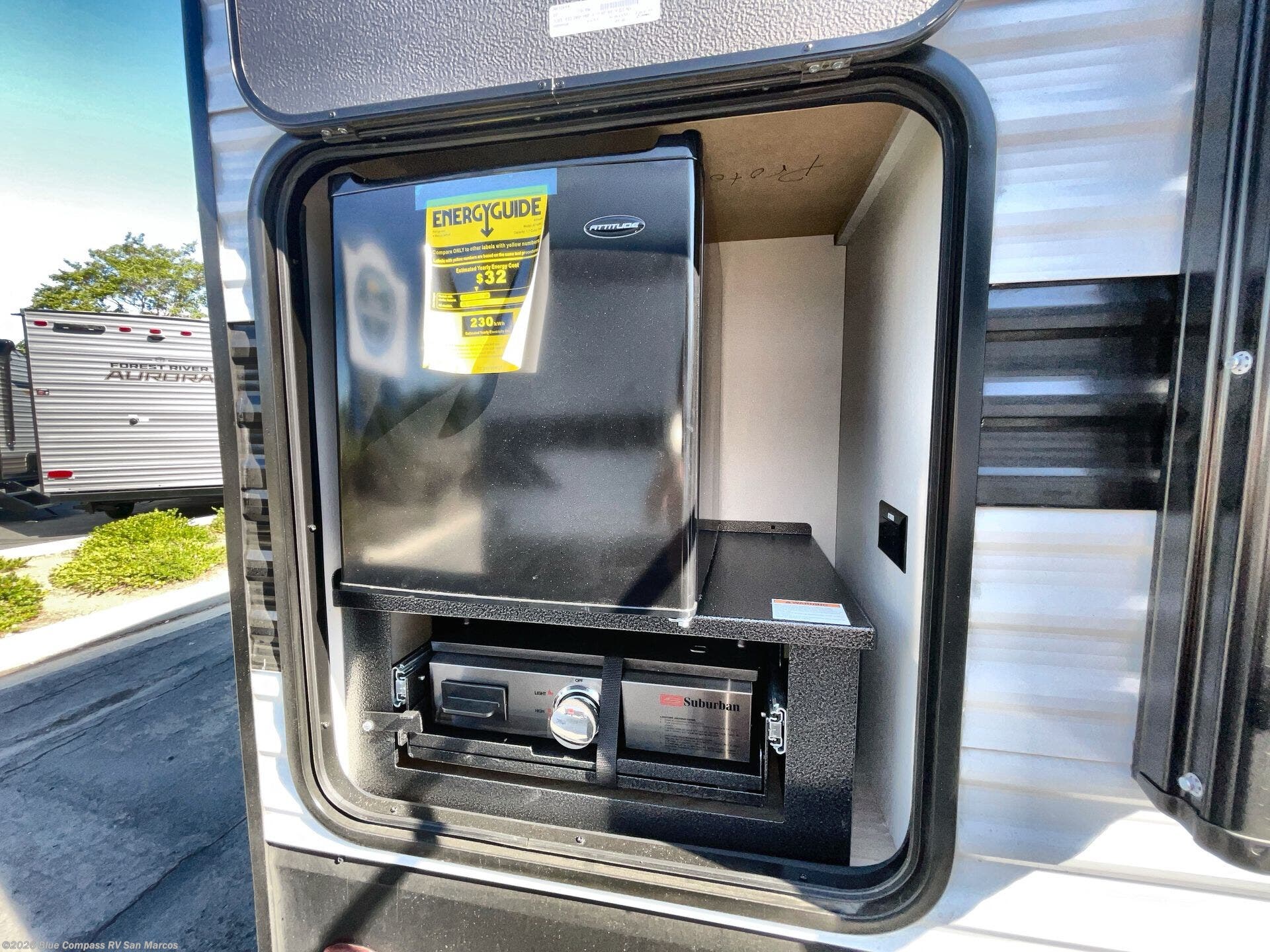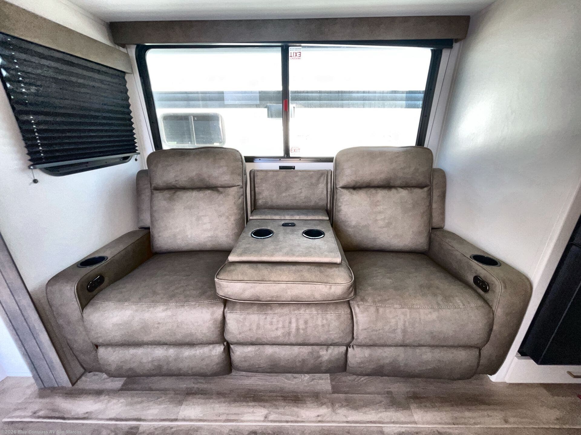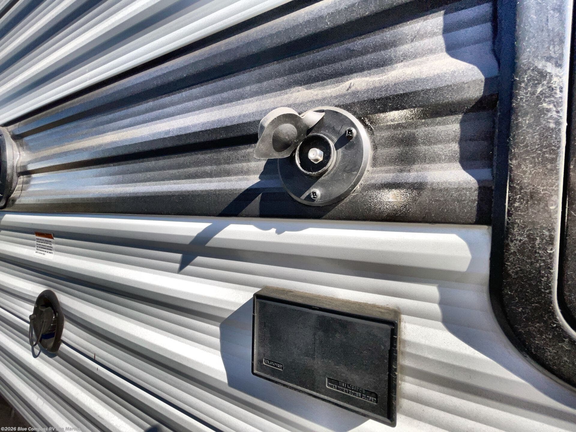 Pack your bags and head for the campground in this spacious travel trailer! Once you arrive, you can unload the pass-thru storage, then make lunch on the exterior griddle with a 1.7 cu. ft. exterior refrigerator. The U-shaped dinette slide will provide a place to dine if you decide not to stay outside under the 16' power awning. Optional theater seats can be chosen in place of the dinette for even more comfort! You'll sleep soundly on the queen bed in the front bedroom, and the full rear bath lets you freshen up each day.