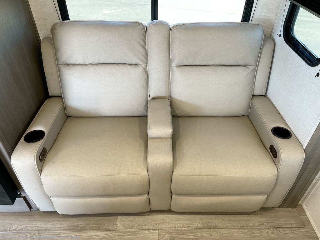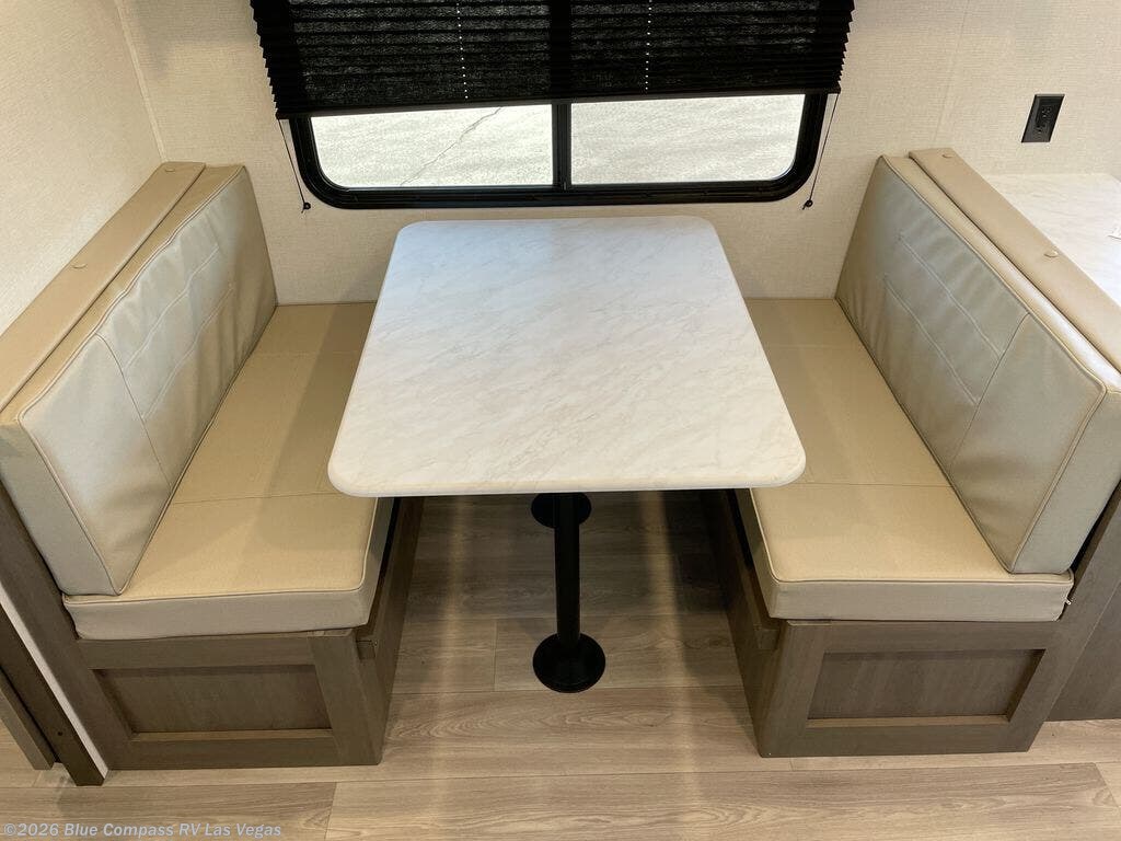 It will be so easy to enjoy camping trips in this travel trailer for five to six! The main living area is made spacious by the large slide out, and here you'll find the 60" sleeper sofa and the kitchen appliances. A booth dinette across the room provides a place to dine and play board games, or you can head outdoors to sit under the 17' power awning with LED lights. The queen bed in the front private bedroom will have you feeling right at home, and the TV prep here gives you the option to watch movies in bed. This model also includes a rear corner kitchen with ample counter space and a large sink, and you'll find the full bath in the other rear corner!