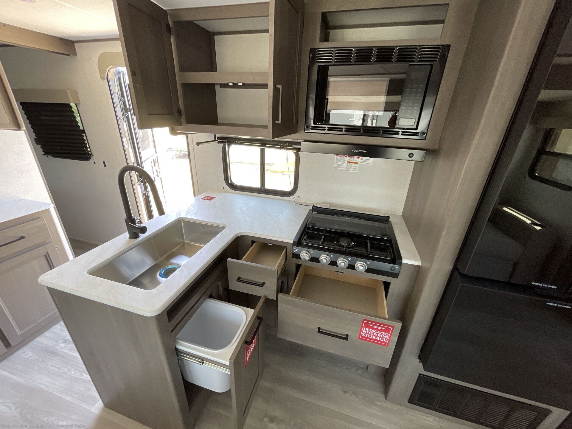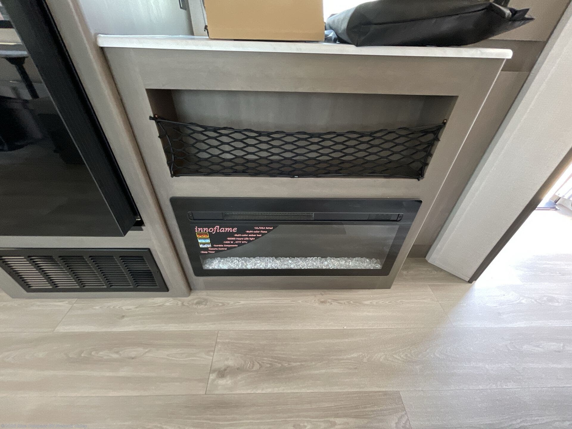 Get ready to take your travels to new heights with our incredible luxury travel trailer! The front bedroom has a queen bed, wardrobe, and overhead cabinets for all your favorite belongings, the perfect place to relax and recharge after a long day of adventure. The living room/kitchen combined area is equipped with a U-shaped dinette, three-burner cooktop, microwave, refrigerator, pantry, and 62” theater seating. Perfect for cooking up your favorite meals, entertaining friends and family, or simply relaxing and enjoying the comforts of home. The full bathroom is spacious and complete with a linen closet for added convenience. And with double-sized bunk beds featuring curtains and under-bunk storage, the kids will have their cozy retreat. But the adventure doesn't stop there! Outside, you'll find an exterior griddle with a 1.7 refrigerator, perfect for cooking up a storm in the great outdoors. And with a massive 19’ awning, you'll have plenty of shade and protection from the elements, plus, with two entry/exit doors and pass-through storage, you'll have easy access to the trailer and all your gear.