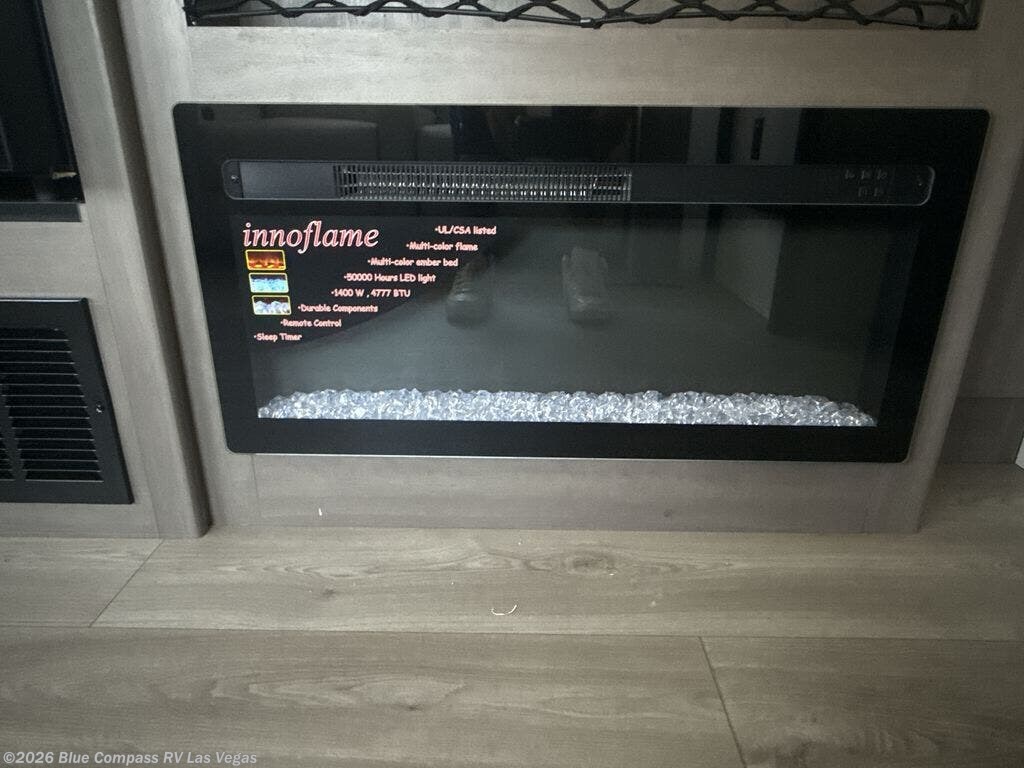 Get ready to take your travels to new heights with our incredible luxury travel trailer! The front bedroom has a queen bed, wardrobe, and overhead cabinets for all your favorite belongings, the perfect place to relax and recharge after a long day of adventure. The living room/kitchen combined area is equipped with a U-shaped dinette, three-burner cooktop, microwave, refrigerator, pantry, and 62” theater seating. Perfect for cooking up your favorite meals, entertaining friends and family, or simply relaxing and enjoying the comforts of home. The full bathroom is spacious and complete with a linen closet for added convenience. And with double-sized bunk beds featuring curtains and under-bunk storage, the kids will have their cozy retreat. But the adventure doesn't stop there! Outside, you'll find an exterior griddle with a 1.7 refrigerator, perfect for cooking up a storm in the great outdoors. And with a massive 19’ awning, you'll have plenty of shade and protection from the elements, plus, with two entry/exit doors and pass-through storage, you'll have easy access to the trailer and all your gear.