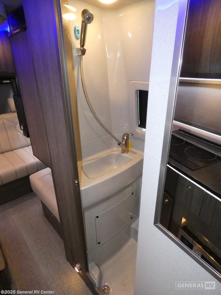 Grech RV Strada-ion Class B diesel motorhome Lounge AWD highlights: Wet Bath with Window Two-Burner Induction Cooktop Power Sofa Bed Table with Mount System Nine Seatbelts Lithium-ion Power Package Whether you travel to see mountains, beaches or friends, this all-wheel drive coach will provide all the luxury and functionality you will want while on the road! There are two captain's chairs plus two additional chairs right behind with a table to dine at once at your destination. You will find five more seatbelts in the rear seating when you plan a trip for everyone to tailgate at the big game, listen to music at a festival, or watch a club sport in another city. When you need to sleep two, the power sofa bed offers just that, and the private enclosed wet bath also includes a window and privacy shade. The cook can make meals using the galley kitchen with a farmhouse-style sink, combo microwave/convection/air fryer and a two-burner induction cooktop. The Strada-ion Class B diesel motorhomes include Grech RV's commitment to excellence through uncompromising efforts to build a beautiful and reliable coach with luxury amenities and the highest level of standard equipment. Some of these features include an air suspension which provides the smoothest and most luxurious ride possible, a custom fiberglass body kit, and a concealed stainless steel utility center. Inside, you will love the Quartz countertop, the Ultraleather rear seating surfaces, the Swiss Chrono hardwood cabinets with radius doors, and the diesel-powered Timberline system that offers a tankless hot water heater, furnace and heating. Probably the most enticing feature found on the Strada-ion is the Lithium-ion Power Package. This package comes with Lithionics lithium batteries (12V), an integrated battery management system, an auxiliary 280 AMP alternator with wakespeed regulator, and a 3,000W Xantrex inverter. All of this provides your coach with clean and quiet energy in the place of a standard generator.