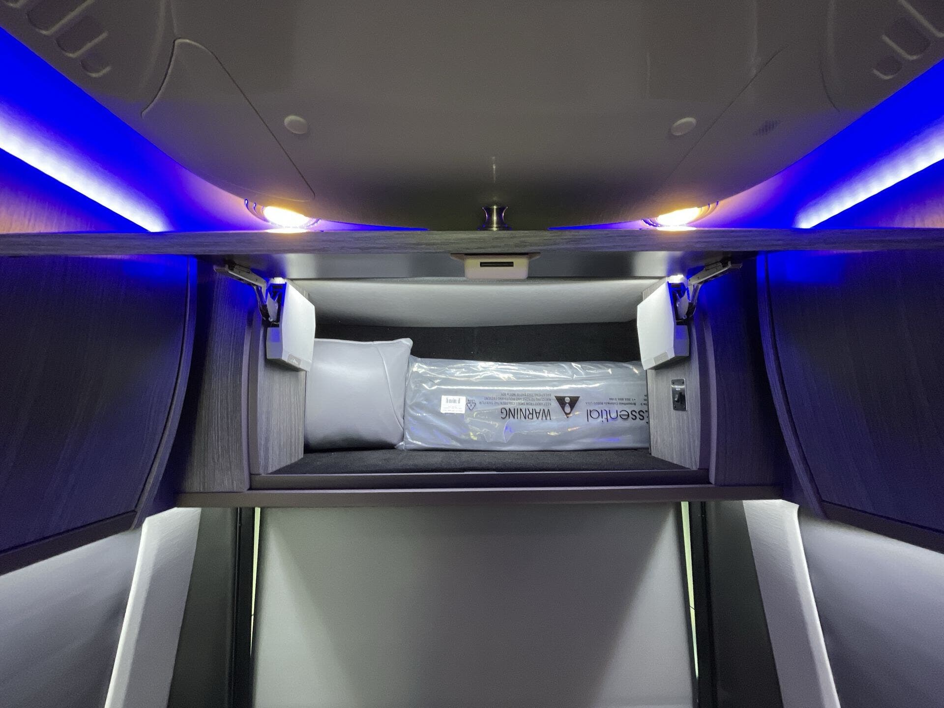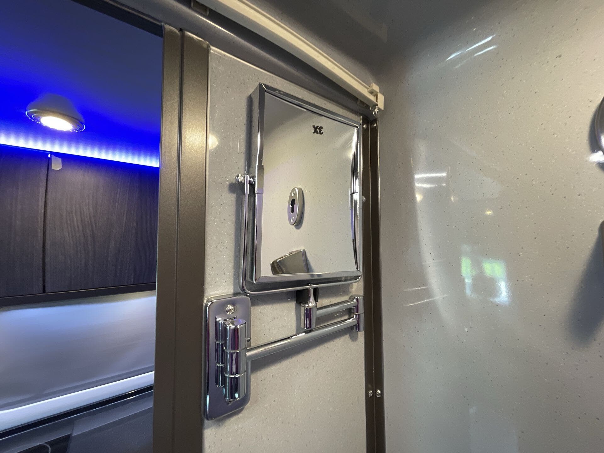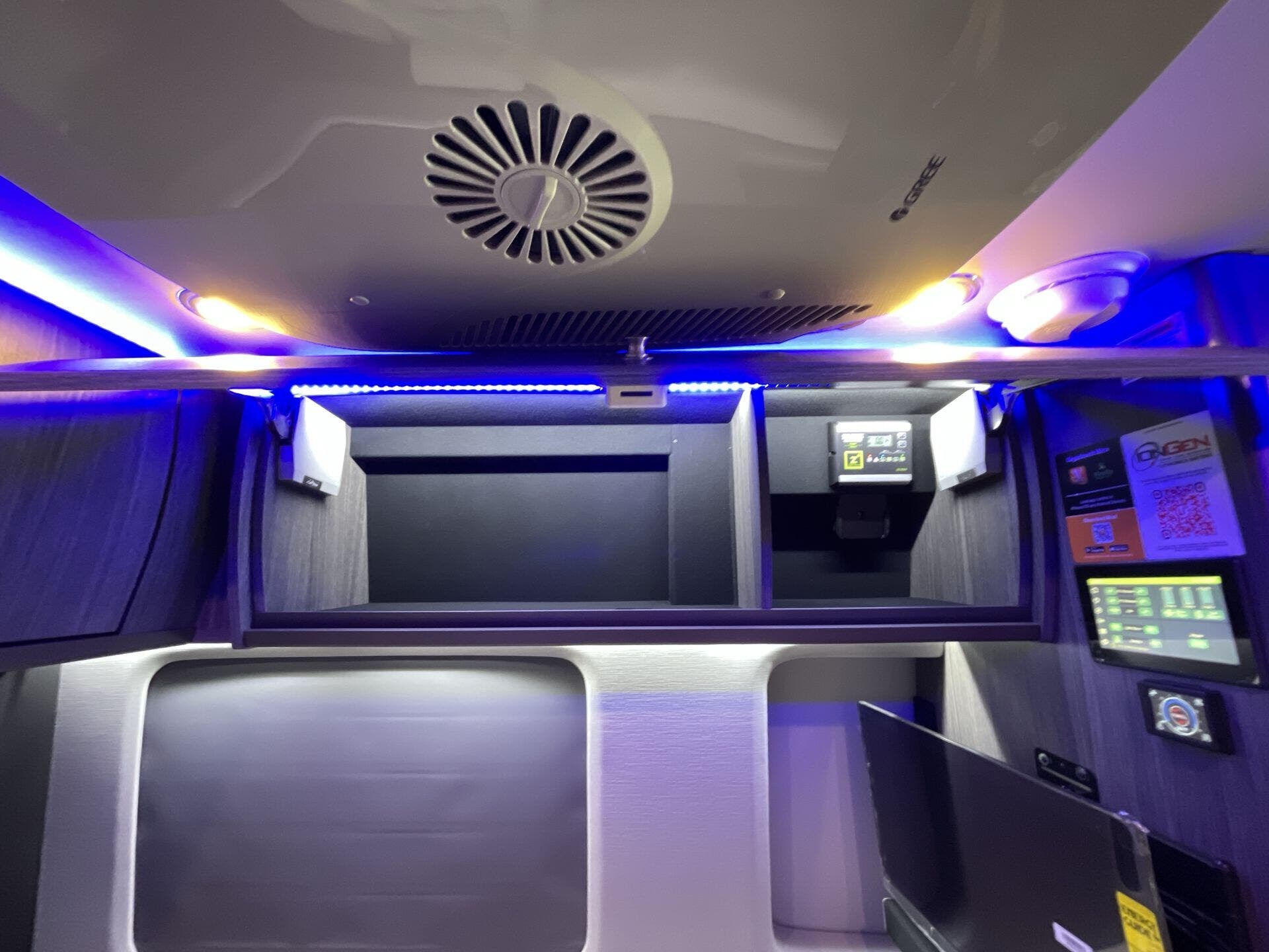 The Terreno’s thoughtfully designed interior maximizes space and functionality, making every trip enjoyable. It sleeps two comfortably, suitable for couples or solo travelers. The interior features include plush leather furniture, overhead cabinetry, a pantry, and a removable table for versatile living spaces. The full-size shower, toilet, and water capacities of 26 gallons fresh, 13 gallons black, and 27 gallons grey ensure you're well-equipped for extended adventures.