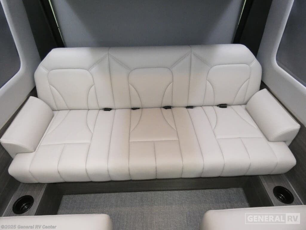 Grech RV Terreno-ion AWD Class B diesel motorhome Tour highlights: Two Captain's Chairs Seats Up To Seven Wardrobe Sleeps Two Power Sofa Bed Enclosed Wet Bath When you want to travel to games, events or for vacations, this coach allows you to in comfort, luxury and with the sophistication you desire! There are two captain's chairs in the cab that swivel towards the rear for more seating once stopped. You will find sleeping space for two on the rear power sofa bed, plus a table with a mount system to dine at with seating for five in the back. Everyone can watch the 24" LED Smart TV with Blu-Ray and DVD player, and enjoy the soundbar with premium sound system, the USB and 110V charging ports for your electronics, plus the galley kitchen amenities. There is a farmhouse style sink with a faucet and pull-out sprayer, plus the combo microwave/convection/Air Fryer and the induction cooktop allow the chef to make warm meals for everyone. The enclosed private wet bath provides a window and privacy shade, a molded sink with a vanity mirror, a handheld showerhead, a ceramic toilet with foot flush and a retractable clothes line to dry your towels and swimsuits. With each Terreno-ion AWD Class B diesel motorhome by Grech RV, the Lithium-ion Power package offers Lithionics lithium batteries and an integrated battery management system that pairs perfectly with the Firefly integrations control system. This all-wheel drive coach has an in-dash navigation system, rear parking sensors, air suspension, and a 5,000 lb. trailer tow package. Other standout features include the custom fiberglass body kit, the RV window package, plus the diesel powered Timberline system with a tankless hot water heater, furnace and heating. There are also Ultraleather rear seating surfaces, LED ambient accent lighting, vinyl woven flooring, and the list of luxury goes on!