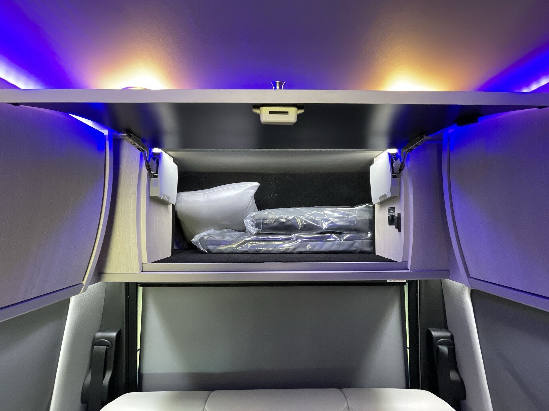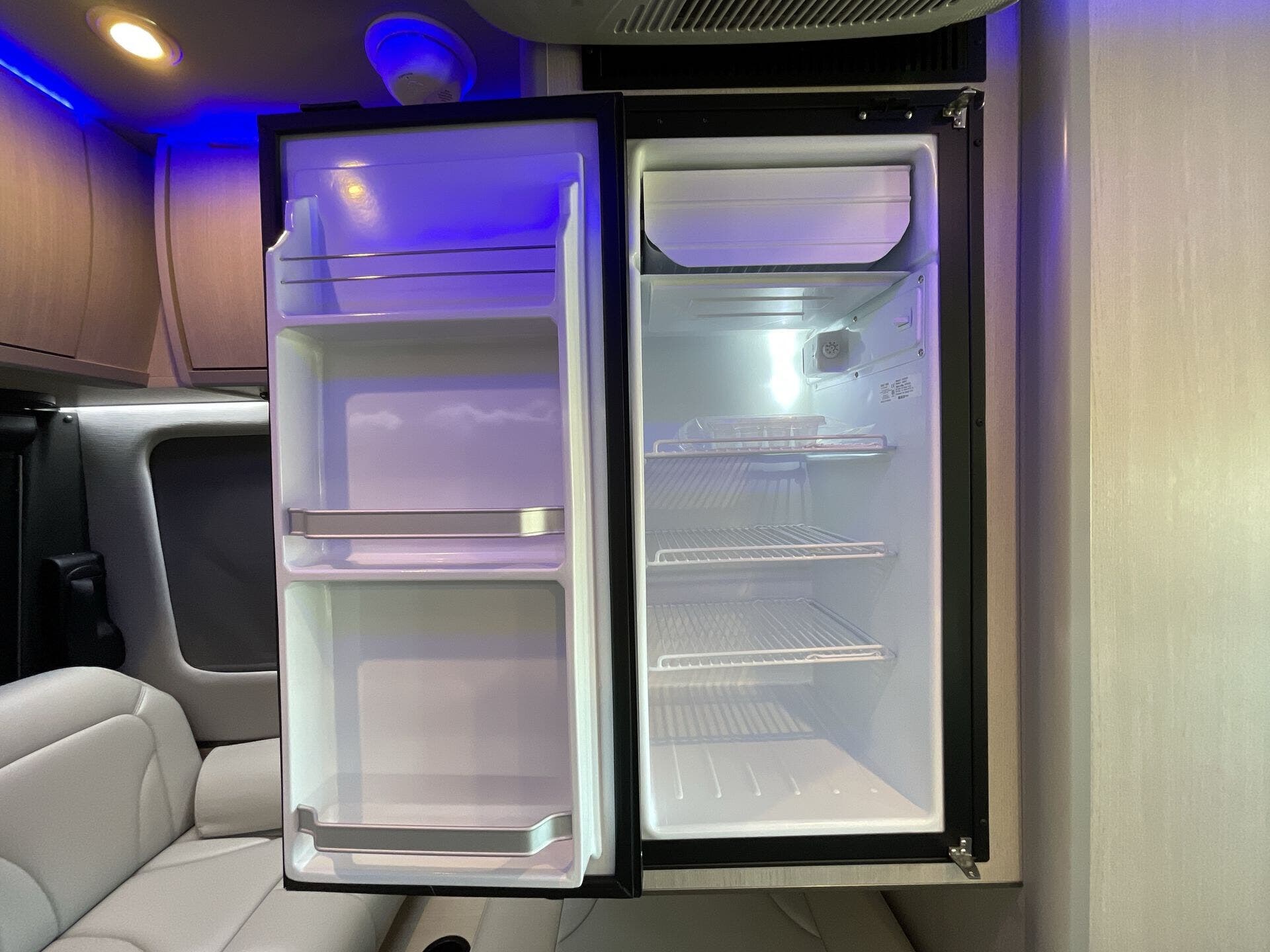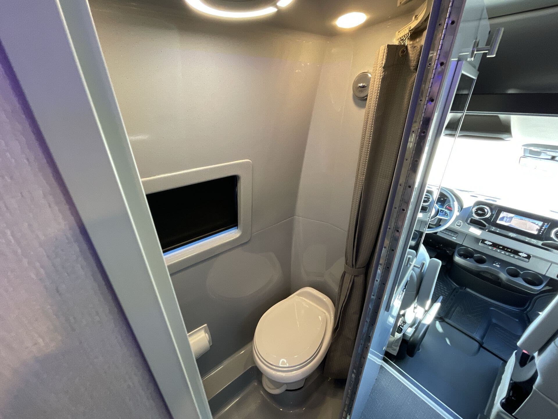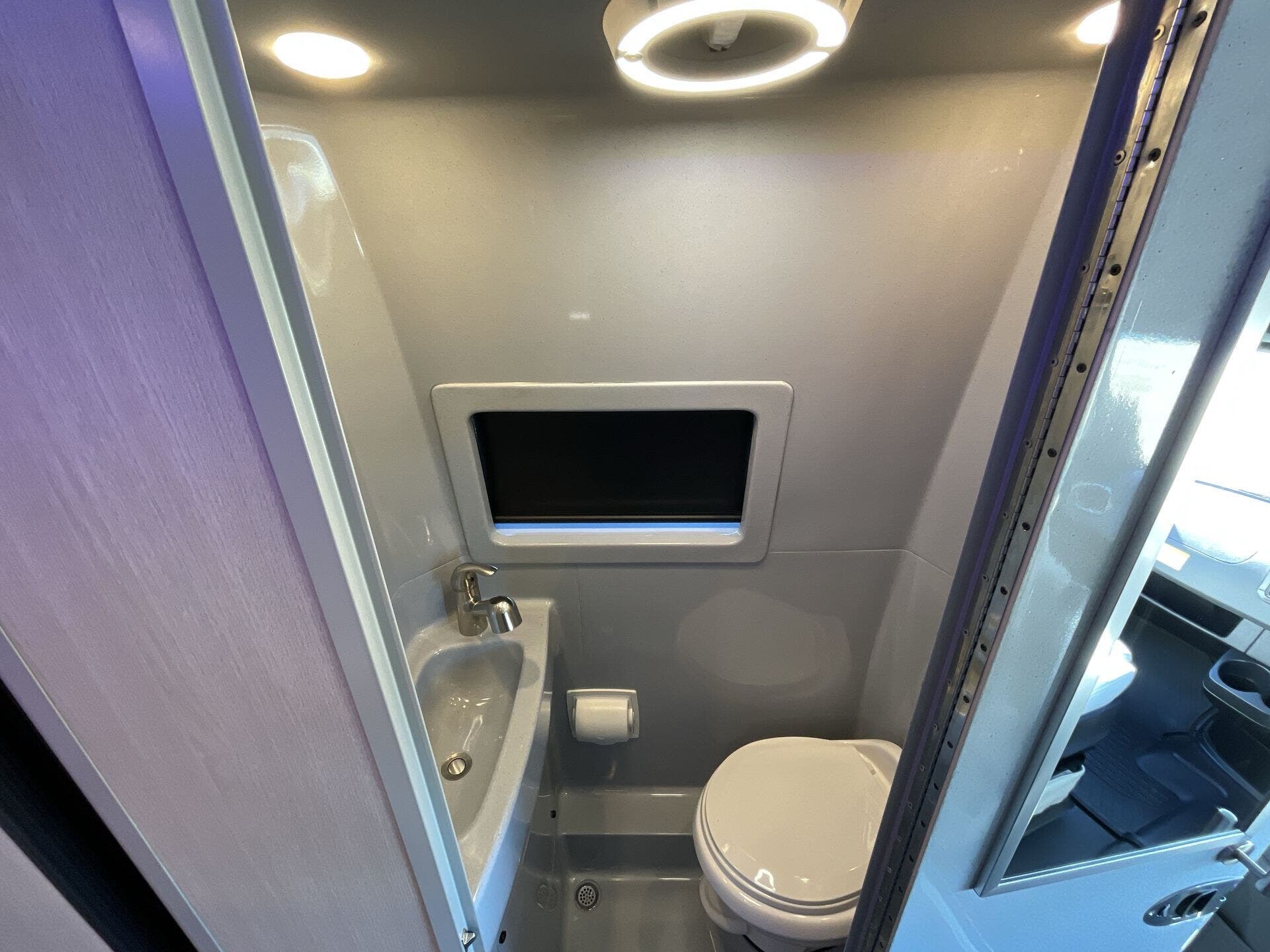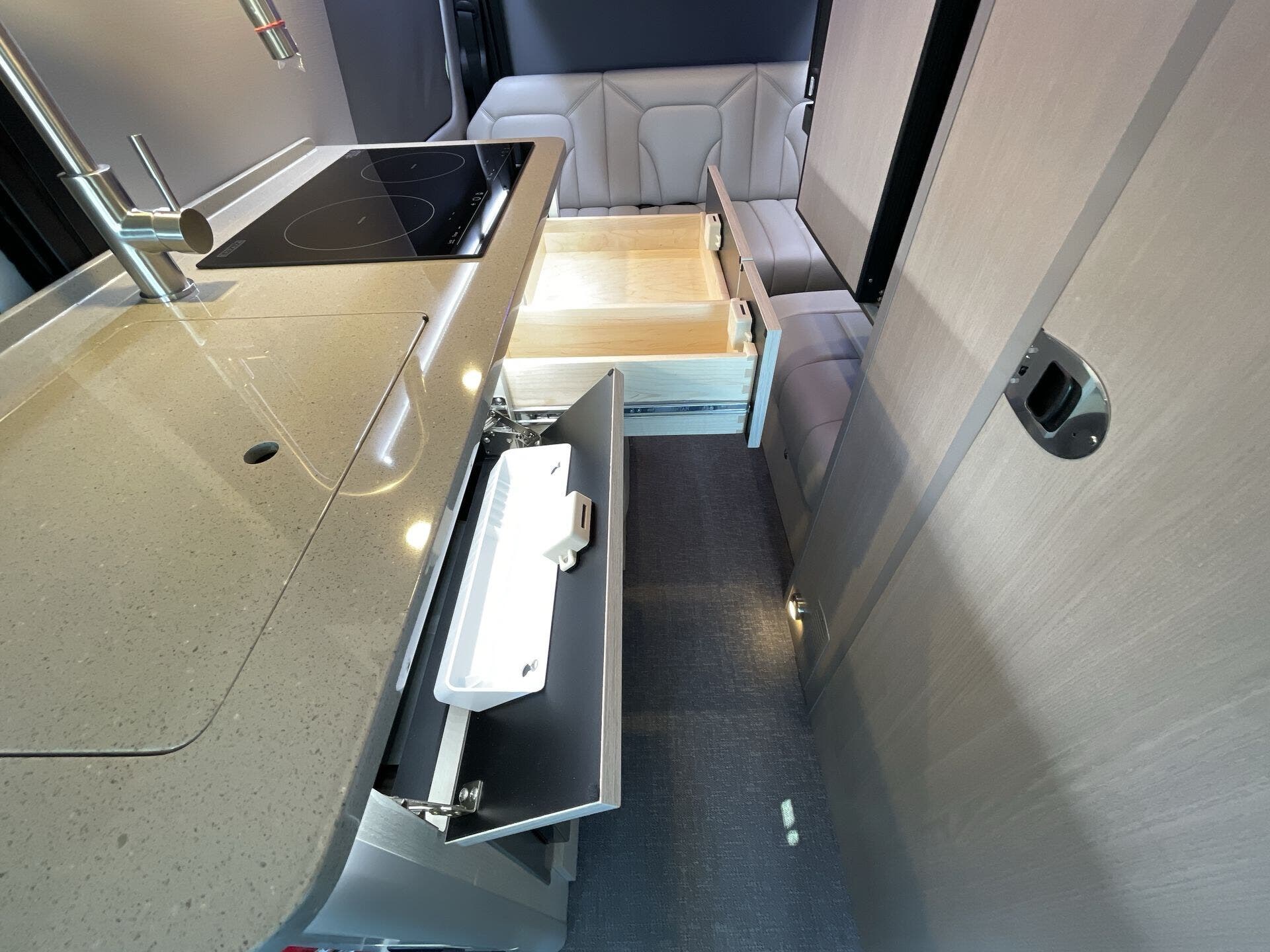 Inside, the Turismo Tour-Ion exemplifies sophisticated craftsmanship, featuring hand-stitched leather seating, sleek cabinetry, and a streamlined layout designed for comfort and functionality. Despite its compact size, the interior maximizes space with clever design elements, including a versatile seating area that converts into a sleeping space. The galley kitchen is outfitted with high-quality appliances and ample storage, while the bathroom offers a full shower and modern amenities.