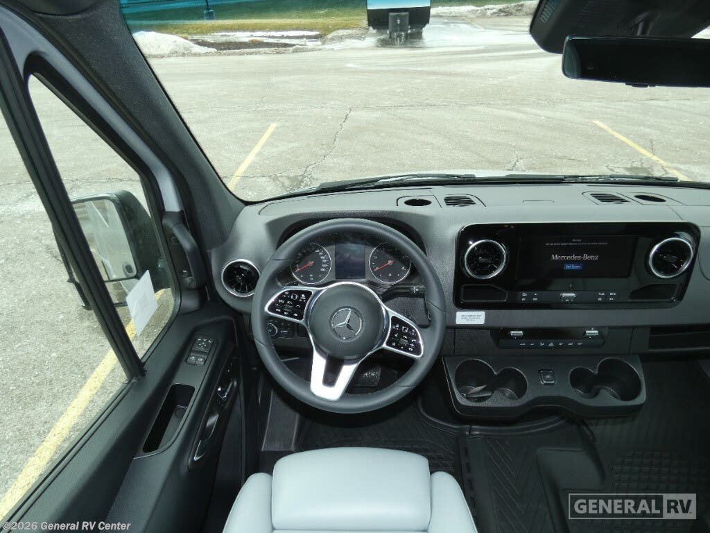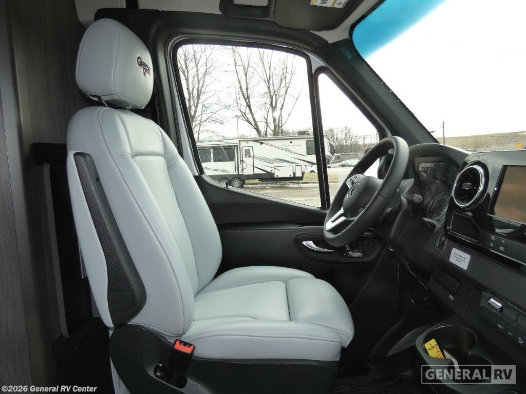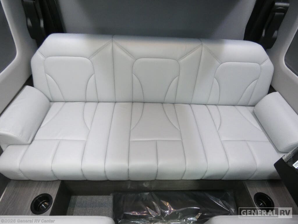 Grech RV Terreno-ion AWD Class B diesel motorhome Tour highlights: Two Captain's Chairs Seats Up To Seven Wardrobe Sleeps Two Power Sofa Bed Enclosed Wet Bath When you want to travel to games, events or for vacations, this coach allows you to in comfort, luxury and with the sophistication you desire! There are two captain's chairs in the cab that swivel towards the rear for more seating once stopped. You will find sleeping space for two on the rear power sofa bed, plus a table with a mount system to dine at with seating for five in the back. Everyone can watch the 24" LED Smart TV with Blu-Ray and DVD player, and enjoy the soundbar with premium sound system, the USB and 110V charging ports for your electronics, plus the galley kitchen amenities. There is a farmhouse style sink with a faucet and pull-out sprayer, plus the combo microwave/convection/Air Fryer and the induction cooktop allow the chef to make warm meals for everyone. The enclosed private wet bath provides a window and privacy shade, a molded sink with a vanity mirror, a handheld showerhead, a ceramic toilet with foot flush and a retractable clothes line to dry your towels and swimsuits. With each Terreno-ion AWD Class B diesel motorhome by Grech RV, the Lithium-ion Power package offers Lithionics lithium batteries and an integrated battery management system that pairs perfectly with the Firefly integrations control system. This all-wheel drive coach has an in-dash navigation system, rear parking sensors, air suspension, and a 5,000 lb. trailer tow package. Other standout features include the custom fiberglass body kit, the RV window package, plus the diesel powered Timberline system with a tankless hot water heater, furnace and heating. There are also Ultraleather rear seating surfaces, LED ambient accent lighting, vinyl woven flooring, and the list of luxury goes on!