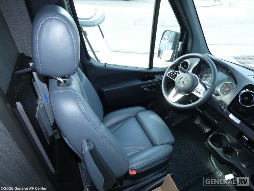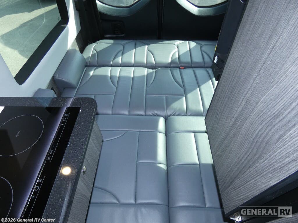 Grech RV Turismo-ion Class B diesel motorhome Tour highlights: Wet Bath Memory Foam Power Sofa Bed Two-Burner Propane Cooktop 24" LED TV w/ Apple TV Patio Screen Door Lithium-ion Power Package Rear Wheel Drive If you are committed to seeing the country, this Turismo-ion Class B diesel motorhome is committed to getting you there in style! This coach elevates every experience with its Ultraleather rear seating surfaces, Swiss Chrono hardwood cabinets, soft-touch walls and headliner, and LED ambient accent lighting. You'll have a Lagun table that you can use when you need to sit down to answer some emails or eat dinner, and you can even prepare the dinner completely within your coach's kitchen because it comes with a two-burner propane cooktop, a combination microwave/convection/air fryer, a refrigerator/freezer, a faucet with a pull-out sprayer, and solid surface countertops with a farmhouse-style sink. You'll also be able to have great mornings since you have your own wet bathroom right there within the coach. The bathroom even includes a ceramic toilet with foot flush, a retractable clothes line, a handheld showerhead, and a molded sink with vanity mirror. For a quality-built, luxury motorhome, take a look at the Turismo-ion Class B diesel by Grech RV. This agile coach includes the Lithium-ion power package with 12V lithium batteries, a 3,000 watt Xantrex inverter, an integrated battery management system, and more. You will also find a multiplex wiring system and a Firefly integration control system, plus a solar 150 watt solar panel when you want to go off-grid. The Timberline System is a feature you are sure to love since it provides continuous flow hot water and heat provided by the diesel fuel. The interior of the Turismo-ion will have you feeling right at home with hardwood cabinets, Ultraleather seating, solid surface countertops, and so much more!