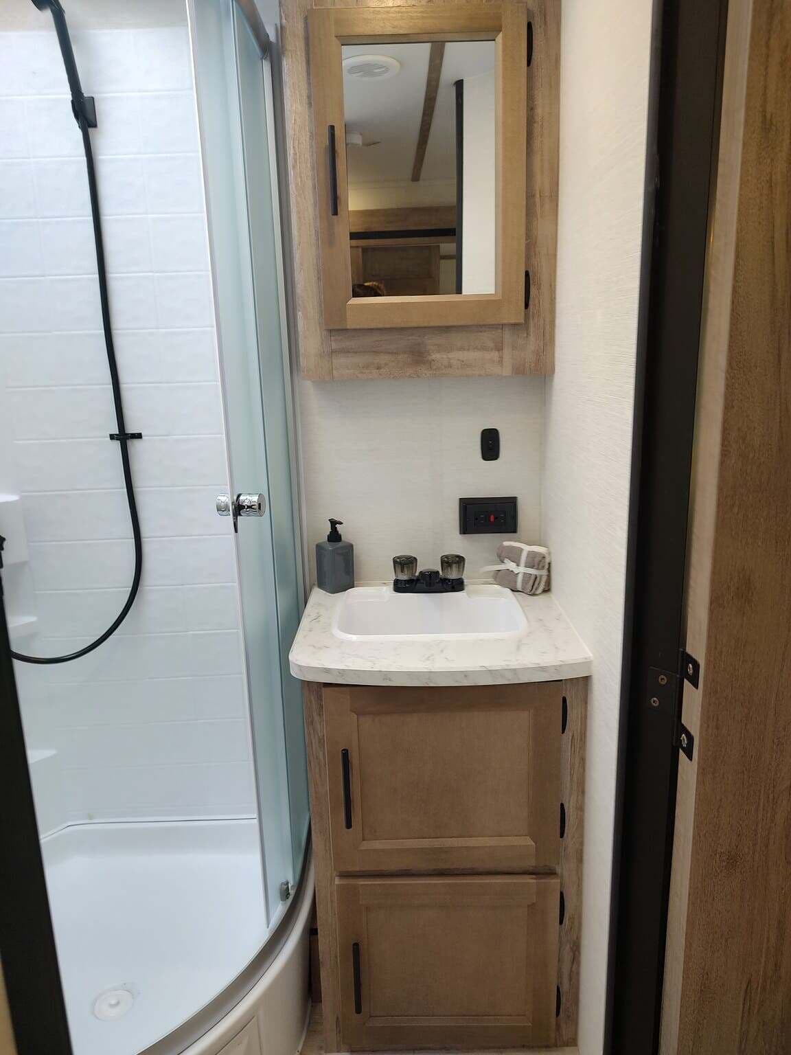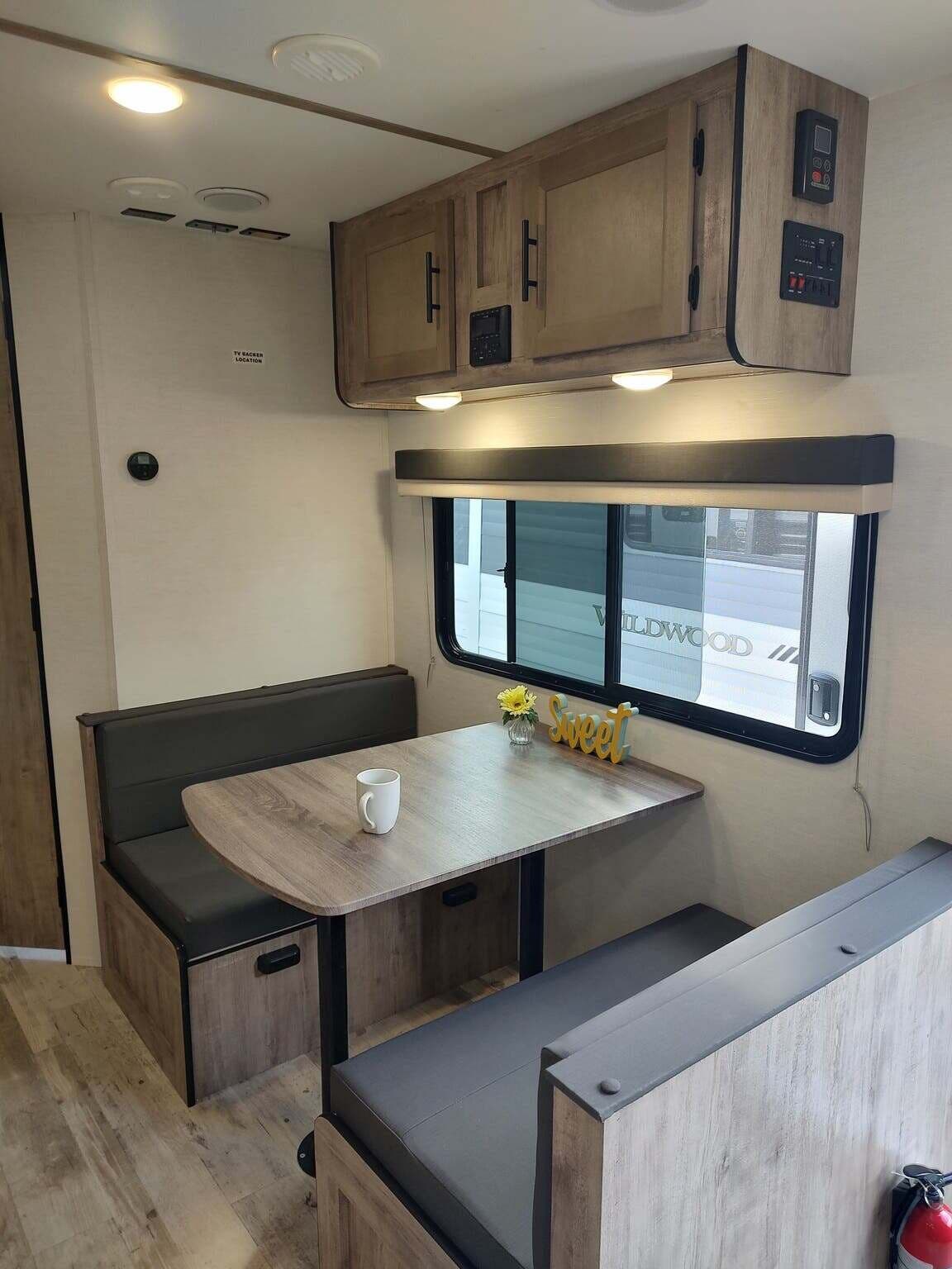 Booth Dinette, Medicine Cabinet, Queen Bed, Roof Vents, Shower, Toilet