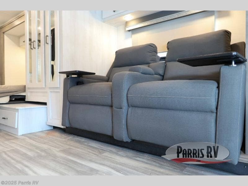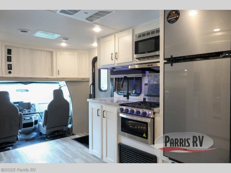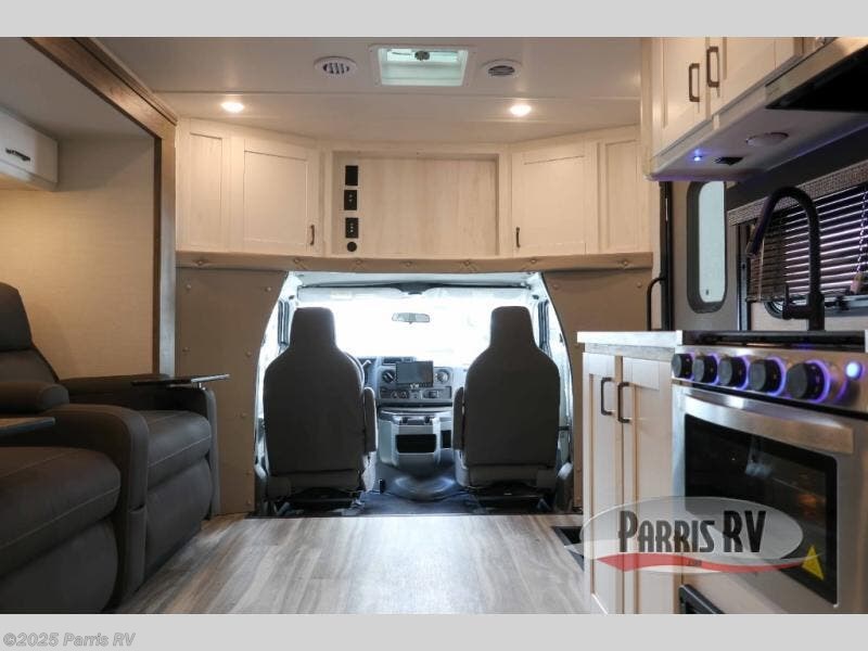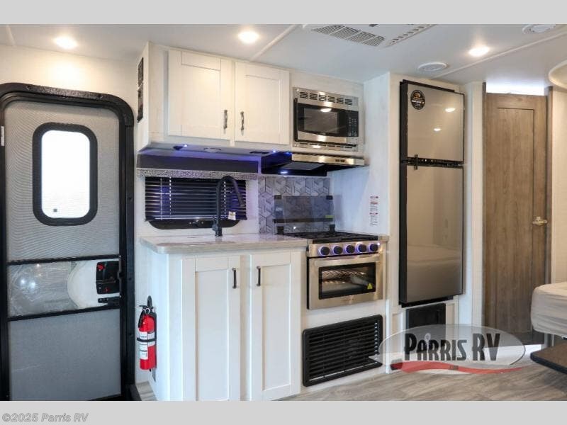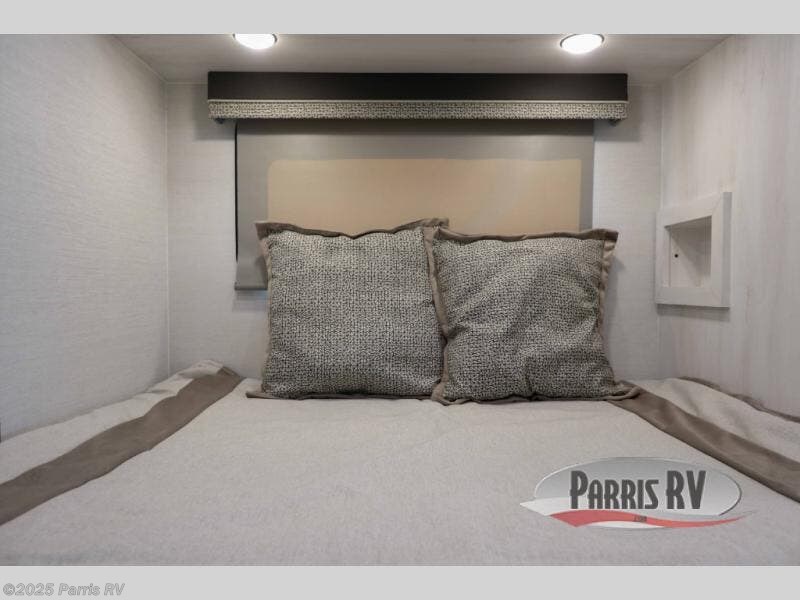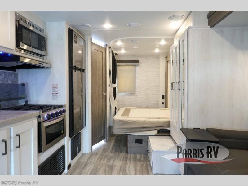 Get ready to see the summer sunshine, the fall colors, and/or the snow on the mountains when you travel in this easy to drive coach! The full-wall slide will impress you with all the floor space from front to back. You can sleep like royalty on the RV queen bed, store your clothes in the wardrobe and food in the pantry, and the booth dinette gives you a place to dine inside. The kitchen offers full amenities to make warm meals and keep leftovers cold in the refrigerator. And you can stay clean with the full bathroom in the rear corner. And don't forget about the electric awning outside, giving you an outdoor living area.