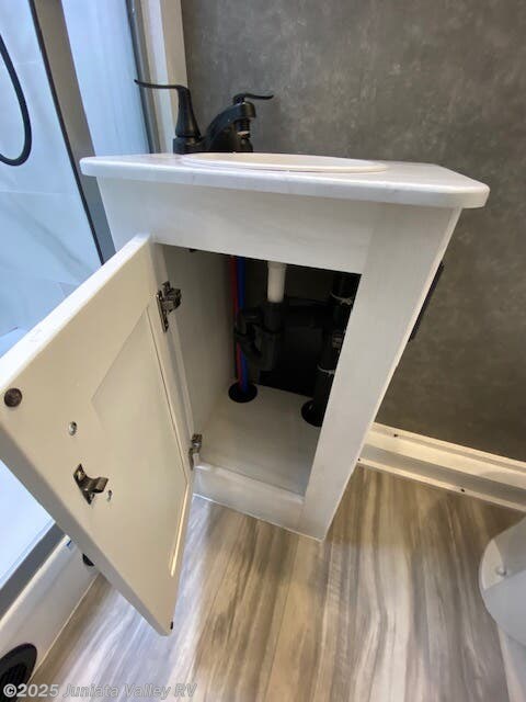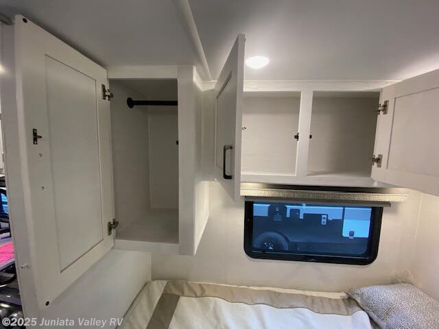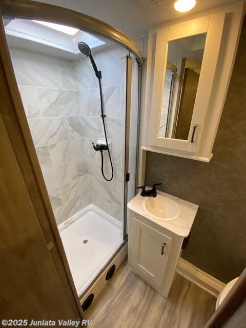 Azdel Composite Panels, Corian Countertops, Kitchen Sink, Living Quarters, Medicine Cabinet, Overhead Cabinetry, Pantry, Pet Friendly, Roof Vents, Self Contained, Shower, Solid Surface Countertops, Theater Seating, Toilet, Wardrobe(s)