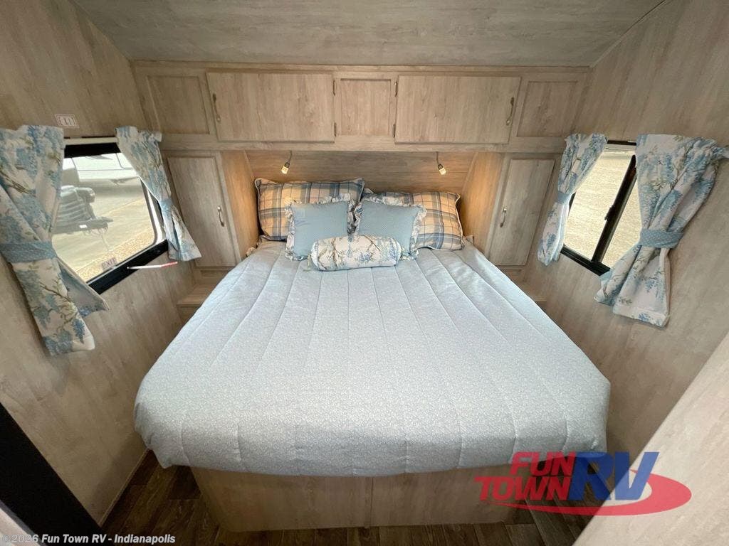 Step into comfort with this classic travel trailer in tow. You will find a rear vintage booth dinette and a sofa slide out with end tables to set your drinks on. The kitchen is complete with a microwave oven, cooktop, plus overhead cabinets for your belongings. After a day outdoors, you can clean up in the 24" x 36" shower, and there is a private toilet and sink across the hall if someone needs to use it while you're cleaning up. This model will feel just like home with its RV queen bed and dual shirt closets for your clothes.
