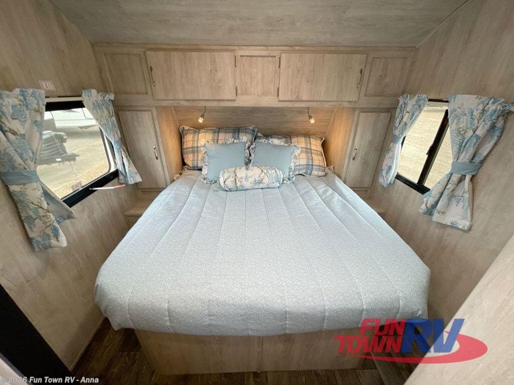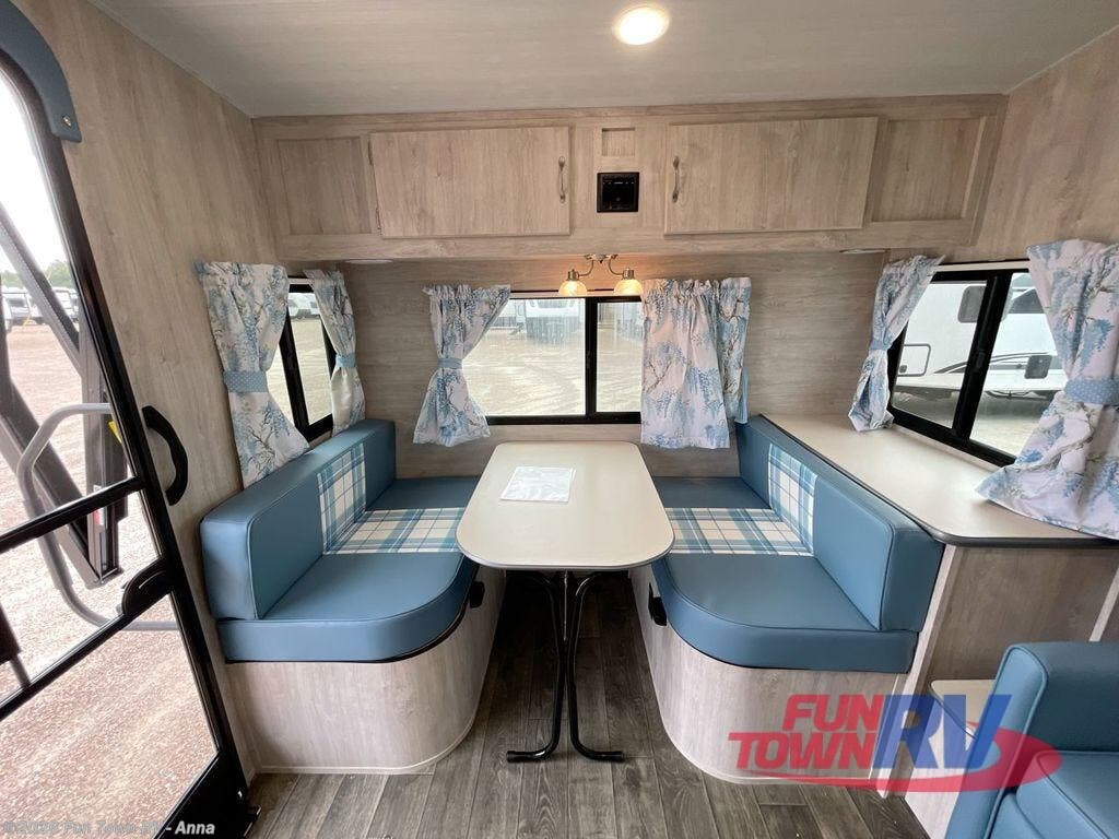 Step into comfort with this classic travel trailer in tow. You will find a rear vintage booth dinette and a sofa slide out with end tables to set your drinks on. The kitchen is complete with a microwave oven, cooktop, plus overhead cabinets for your belongings. After a day outdoors, you can clean up in the 24" x 36" shower, and there is a private toilet and sink across the hall if someone needs to use it while you're cleaning up. This model will feel just like home with its RV queen bed and dual shirt closets for your clothes.