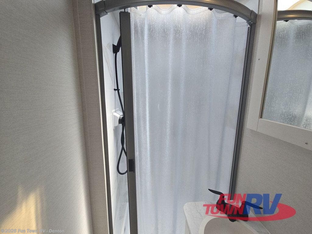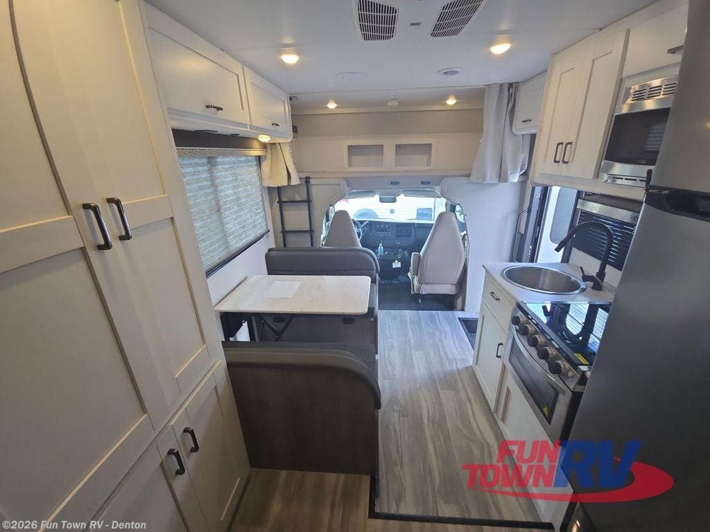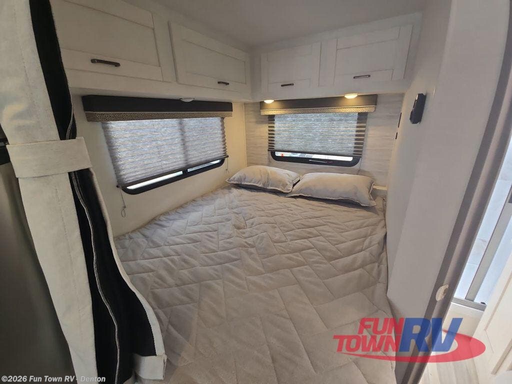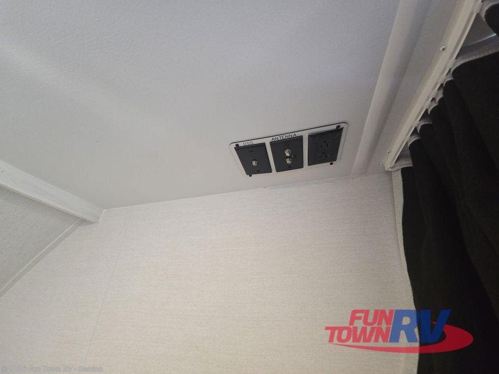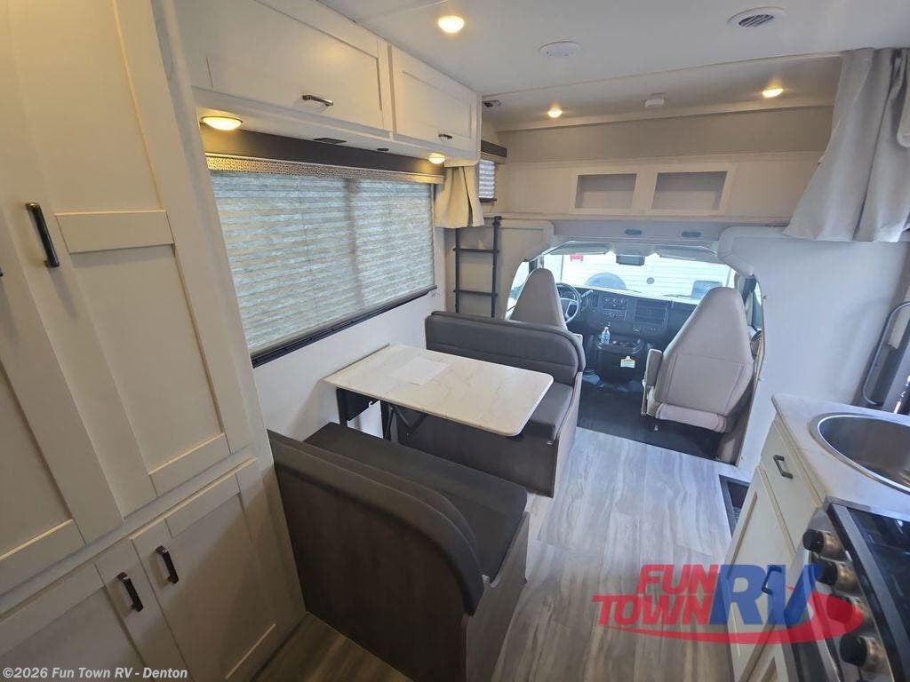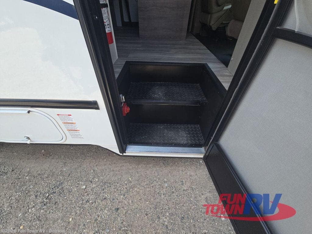 Enjoy a home on wheels with this motorhome! It features an overhead bunk with an insert and an optional TV with swing arm for extra entertainment. The booth dinette offers a comfortable place to enjoy your meals and play card games, as well as transform into an extra sleeping space. The other sleeping space is the corner 60" x 74" queen bed with basement storage underneath and overhead cabinets for your items. A rear corner bathroom lets you get squeaky clean each morning, and you can prepare your best meals with the three-burner cooktop and the 10-cu. ft. 12V double door refrigerator/freezer!