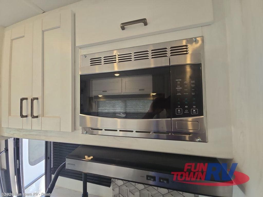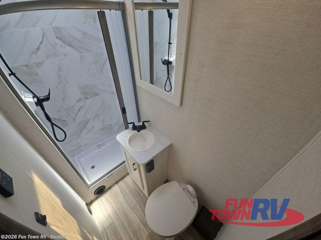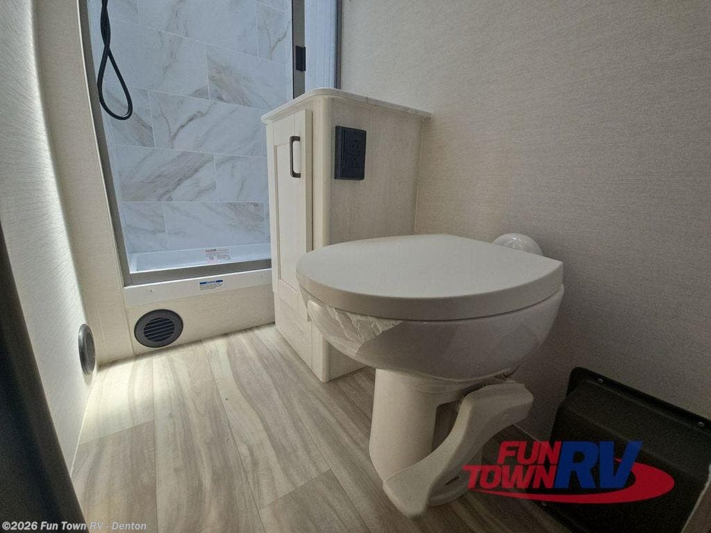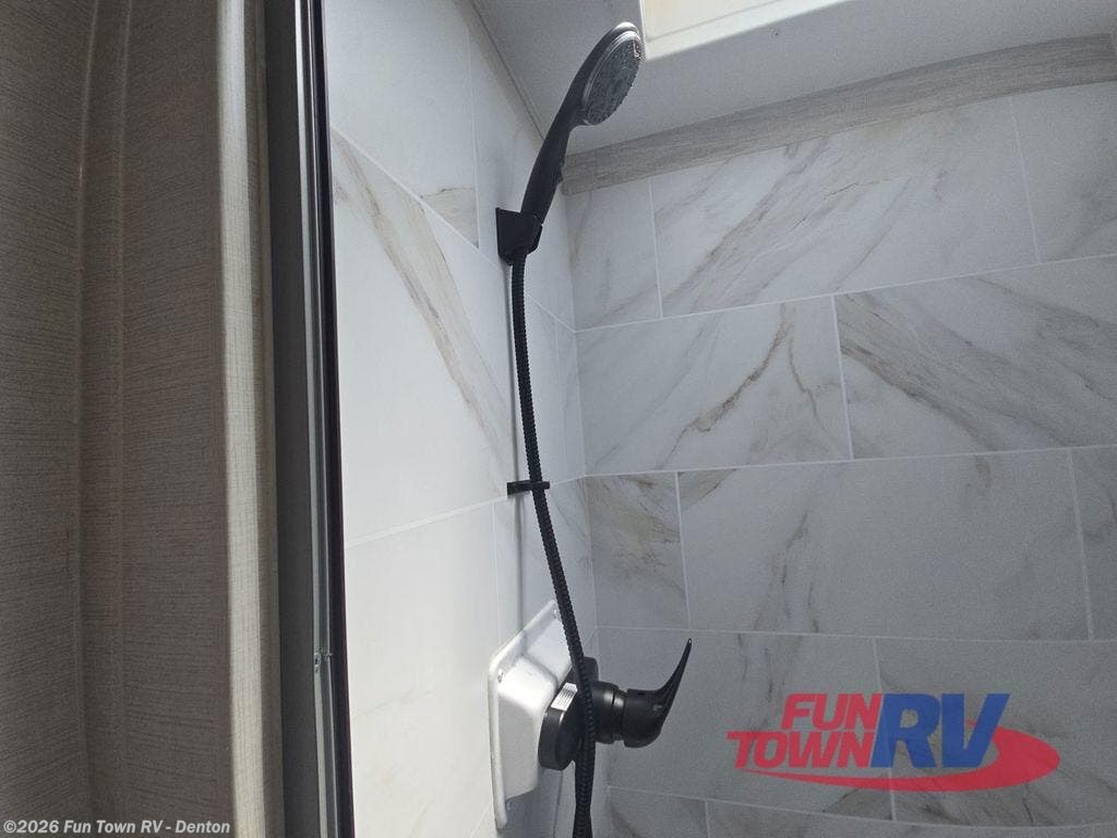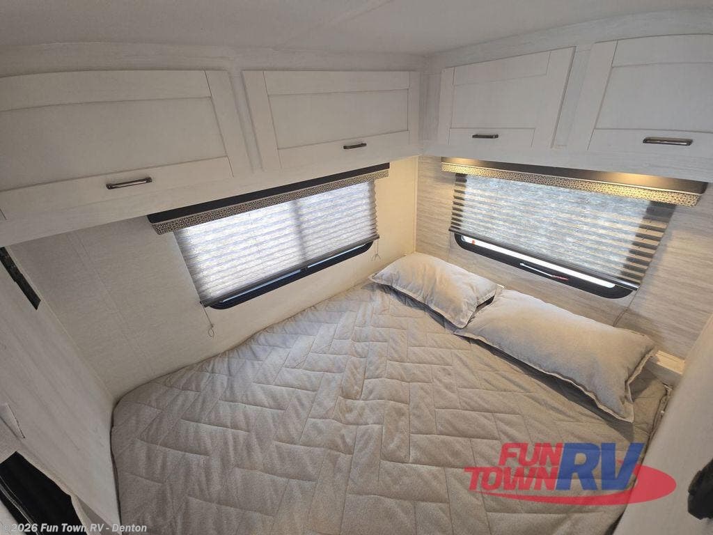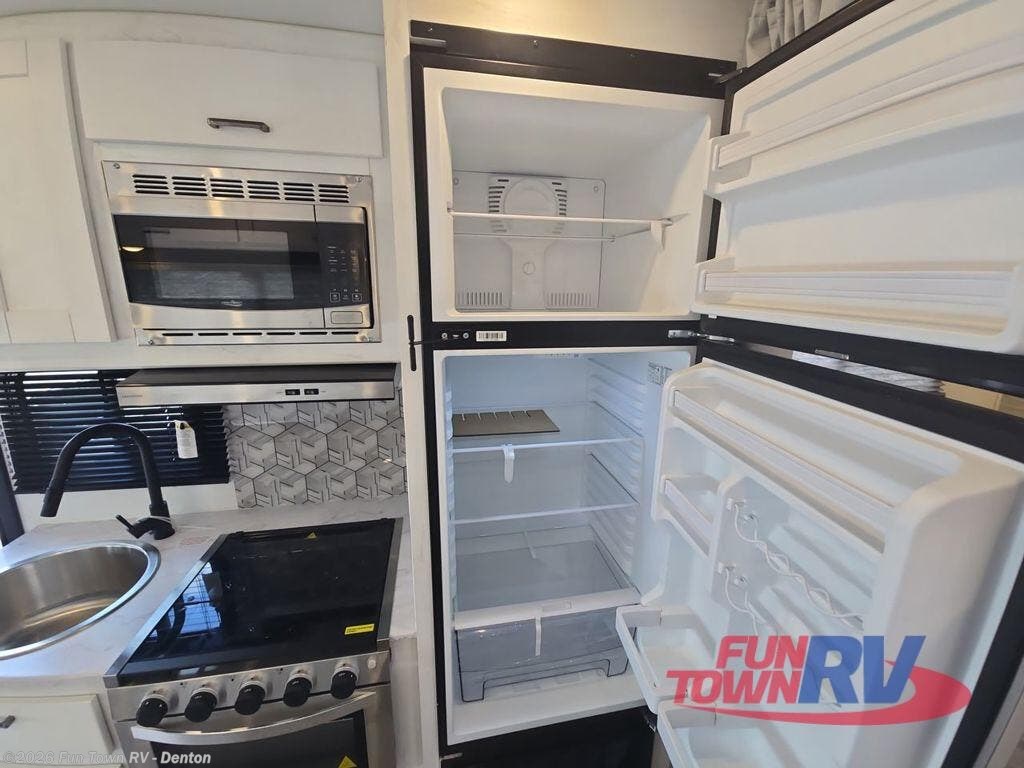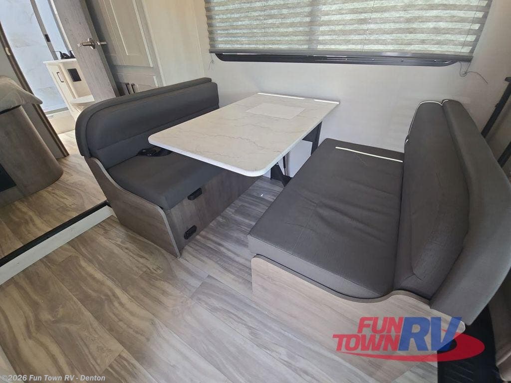 Enjoy a home on wheels with this motorhome! It features an overhead bunk with an insert and an optional TV with swing arm for extra entertainment. The booth dinette offers a comfortable place to enjoy your meals and play card games, as well as transform into an extra sleeping space. The other sleeping space is the corner 60" x 74" queen bed with basement storage underneath and overhead cabinets for your items. A rear corner bathroom lets you get squeaky clean each morning, and you can prepare your best meals with the three-burner cooktop and the 10-cu. ft. 12V double door refrigerator/freezer!