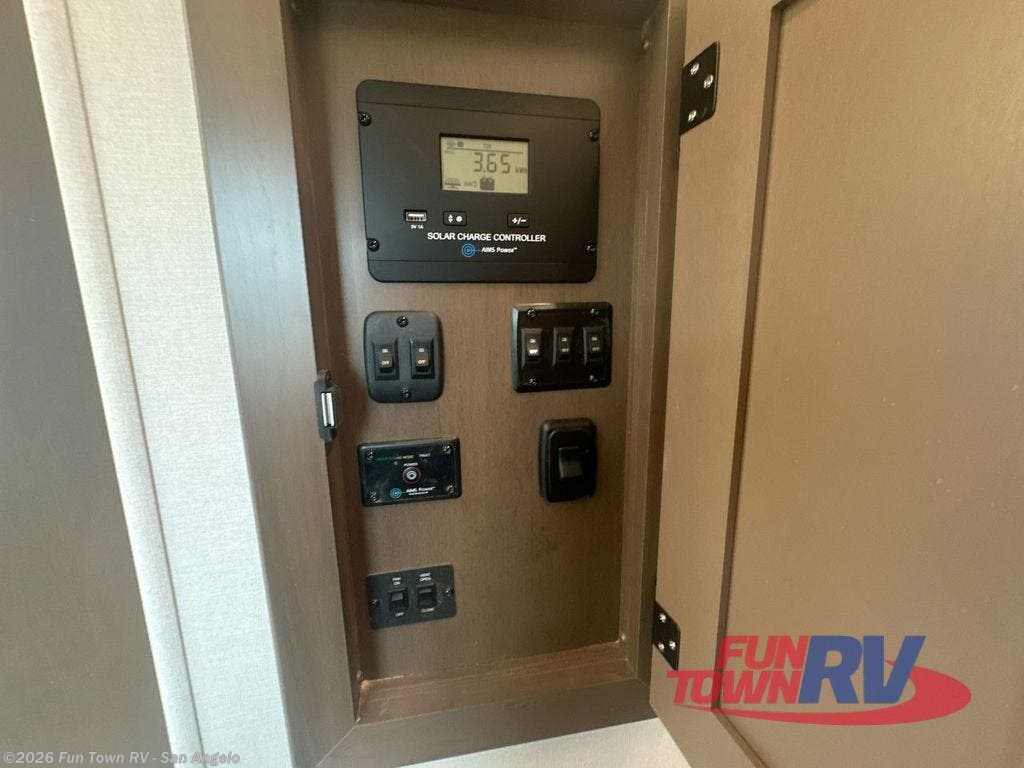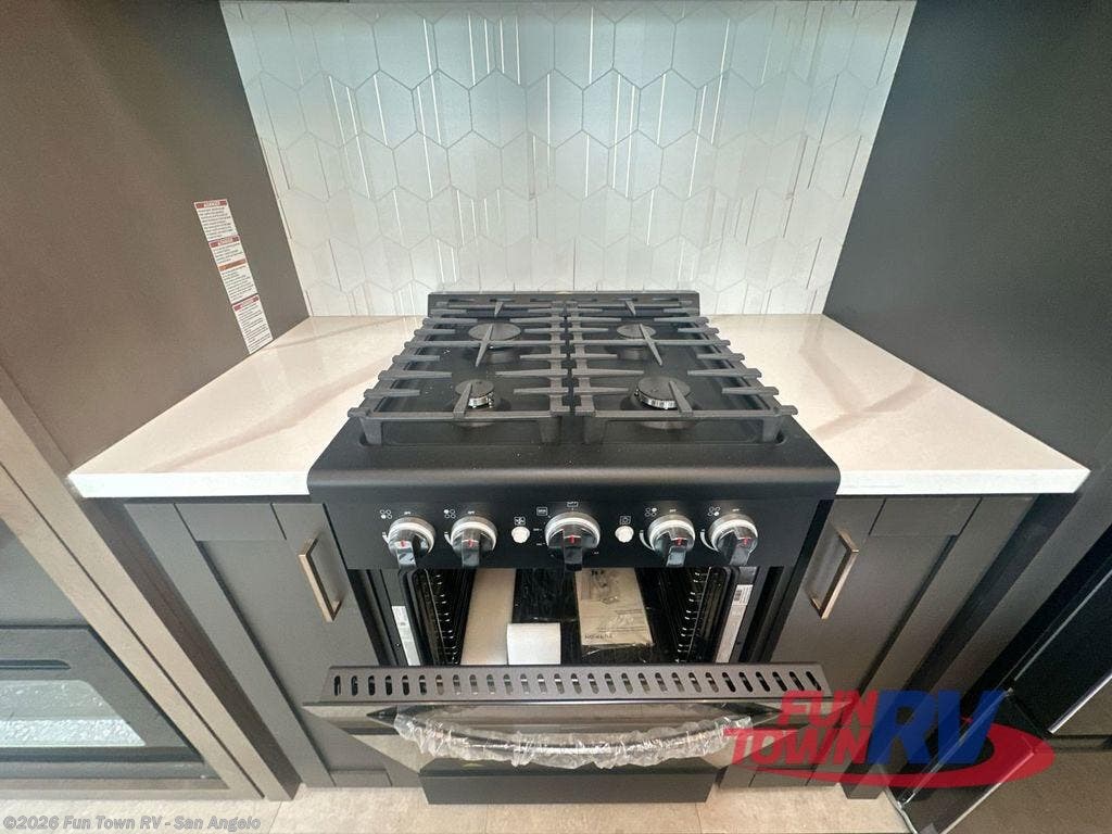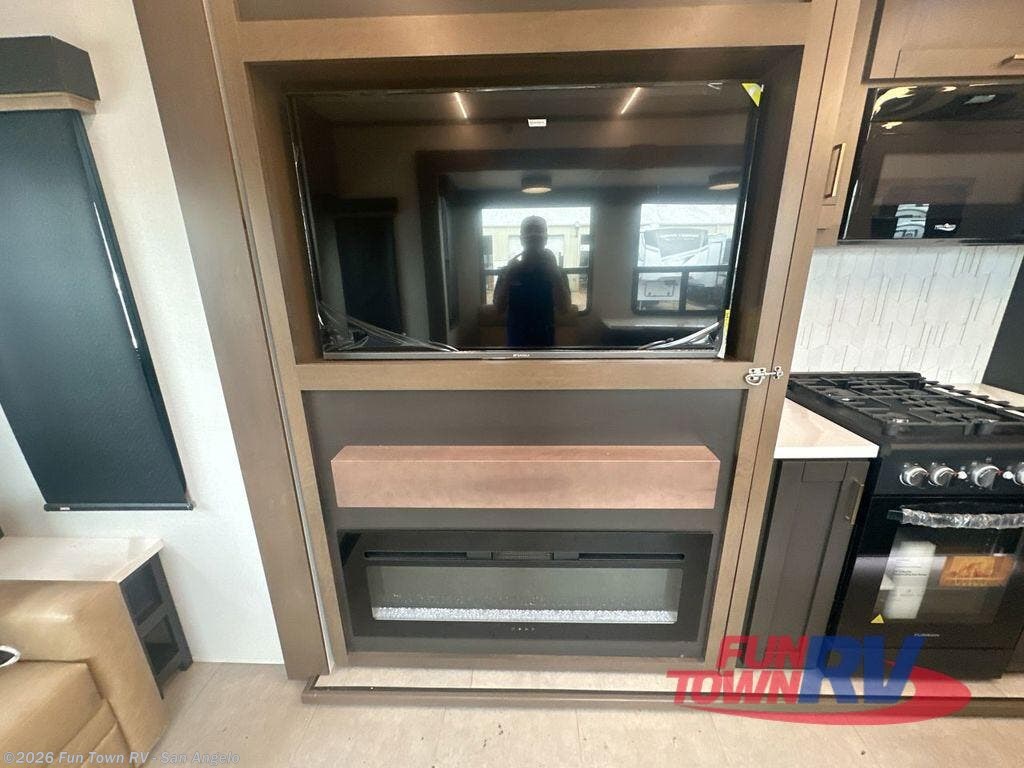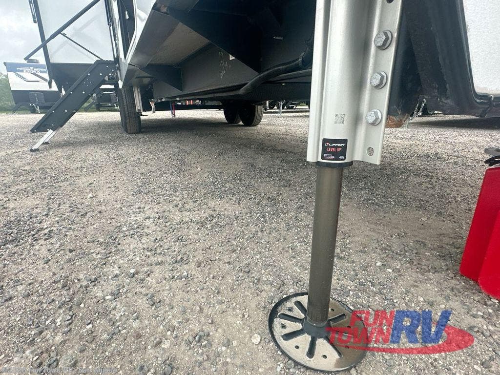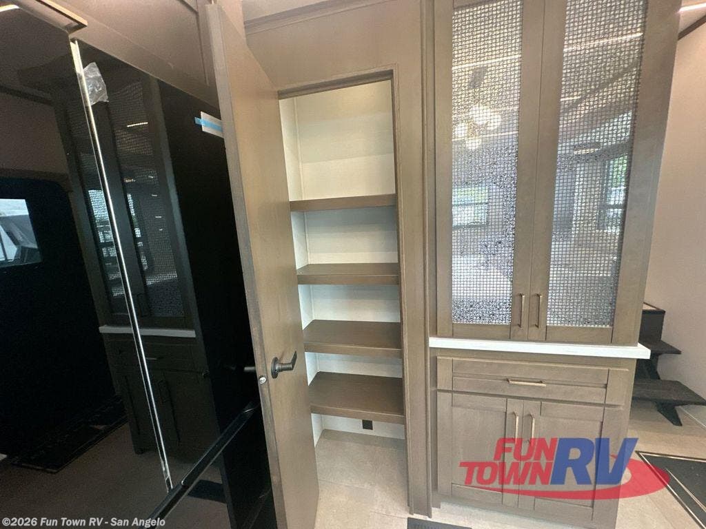 This fifth wheel is perfect for you and your partner. The rear living room is the perfect place to unwind, featuring a plush sofa, theater seating, and a swing desk for working or playing. The culinary dream kitchen has a hidden pantry, overhead cabinet, 3-burner cooktop, 12V refrigerator, kitchen island, and pantry for all your favorite snacks. The full bathroom is fitted with everything you need to freshen up, and the front bedroom is a spacious place so you can comfortably rest and sleep, equipped with a king bed, washer and dryer prep, closet, and overhead cabinets for all your belongings. But the real excitement begins when you step outside, where you'll find not one, but two awnings, perfect for relaxing in the shade. Whether you're a seasoned RVer or just starting, our fifth wheel has everything you need to experience the ultimate in luxury living on wheels.