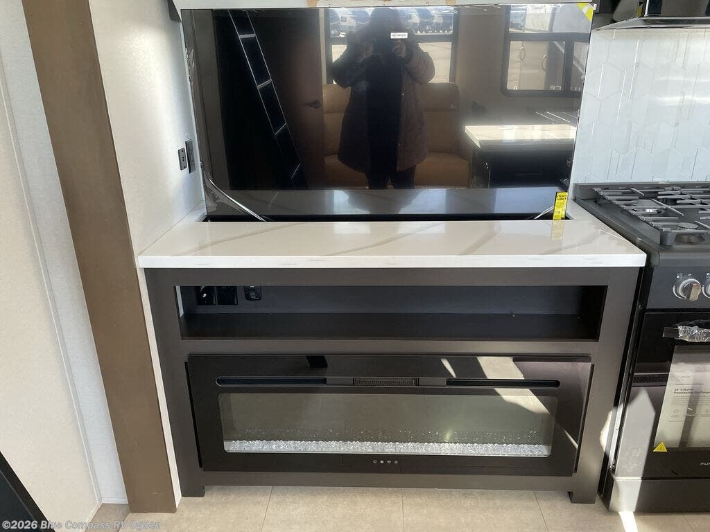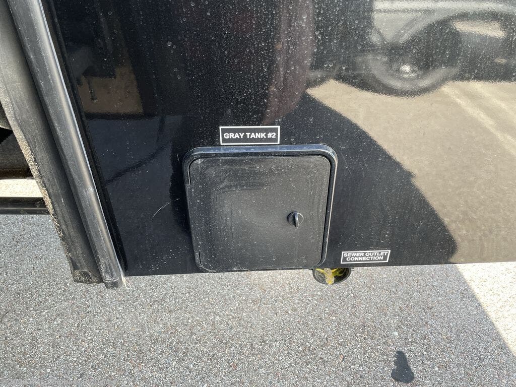 This fifth wheel is perfect for all family members! The full rear bathroom is perfect for getting ready for the day. The bedroom is ideal for two people since they would easily fit in the queen bed, also comes with a dresser, and TV for relaxing. Above the bedroom, a loft area with overhead cabinets provides additional storage and a cozy nook. The kitchen/living area is the heart of the home, equipped with a sofa, entertainment center, fireplace, microwave, kitchen island, refrigerator, and pantry. Perfect for cooking up a storm or relaxing with family and friends. A second full bathroom is a spacious oasis and provides added convenience, while the front bedroom is a luxurious retreat, featuring a king bed, ample closet, and washer and dryer prep. Finally, you and your family and friends can enjoy nature and have fun under the shade of the 16’ awning.