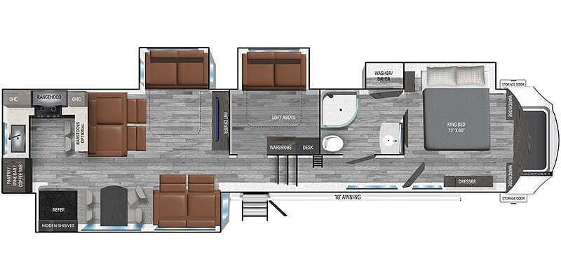 The mid-trailer bonus room also has a fold-out sofa and can easily serve as a bunk room, office/den, or even a simple, quieter reading spot!