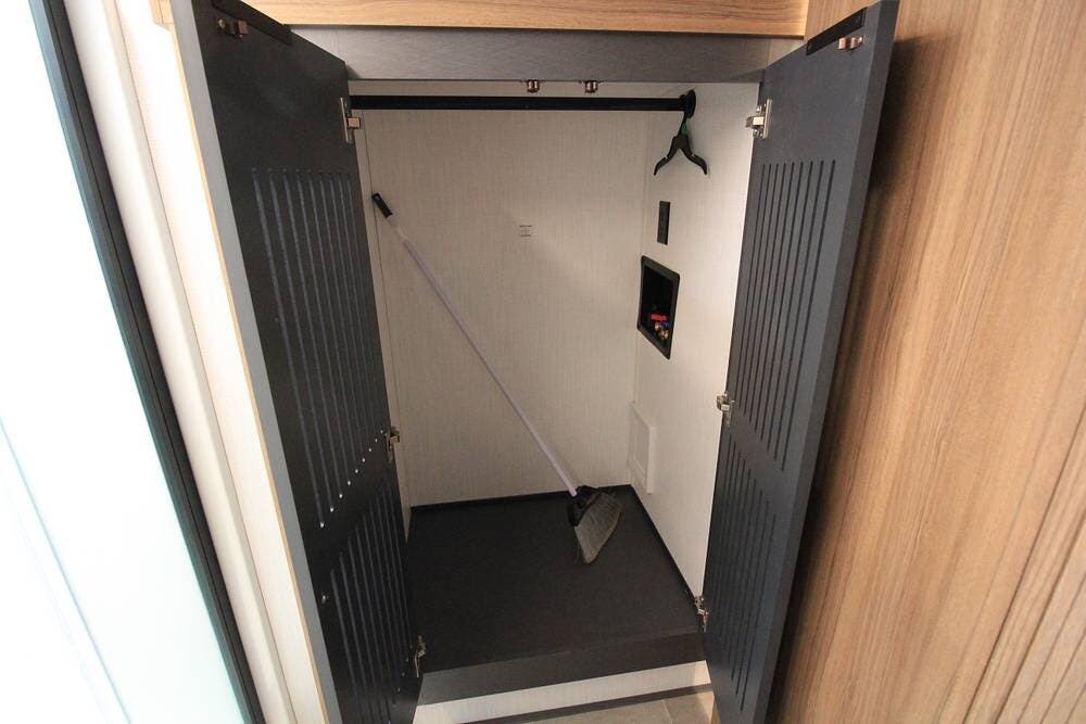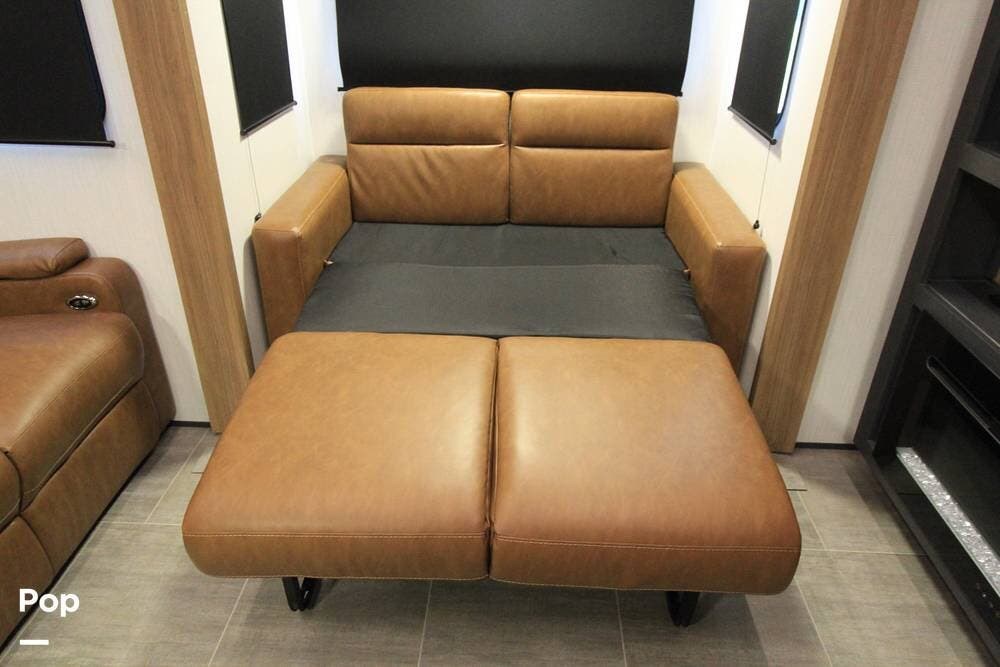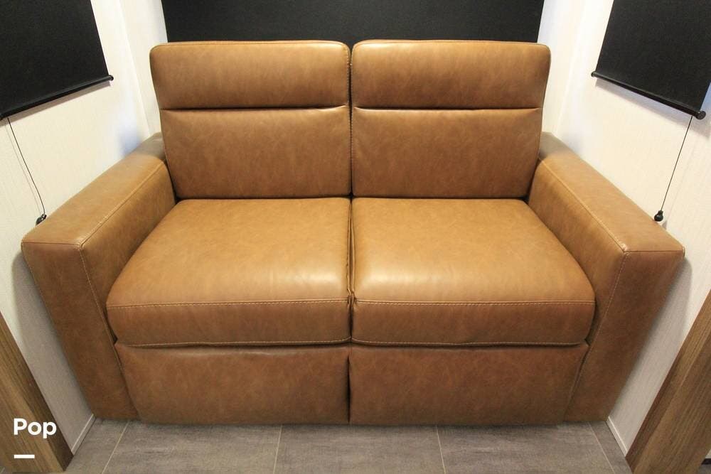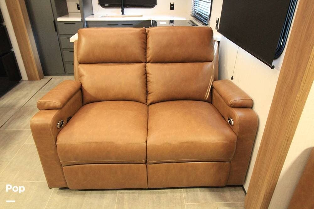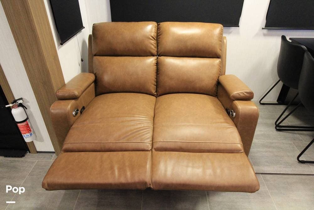 It has all the modern conveniences with USB ports, washer/dryer hook-ups, and an electric fireplace. That's all in addition to the convertible sofa and two seats of stadium recliners in the living room!