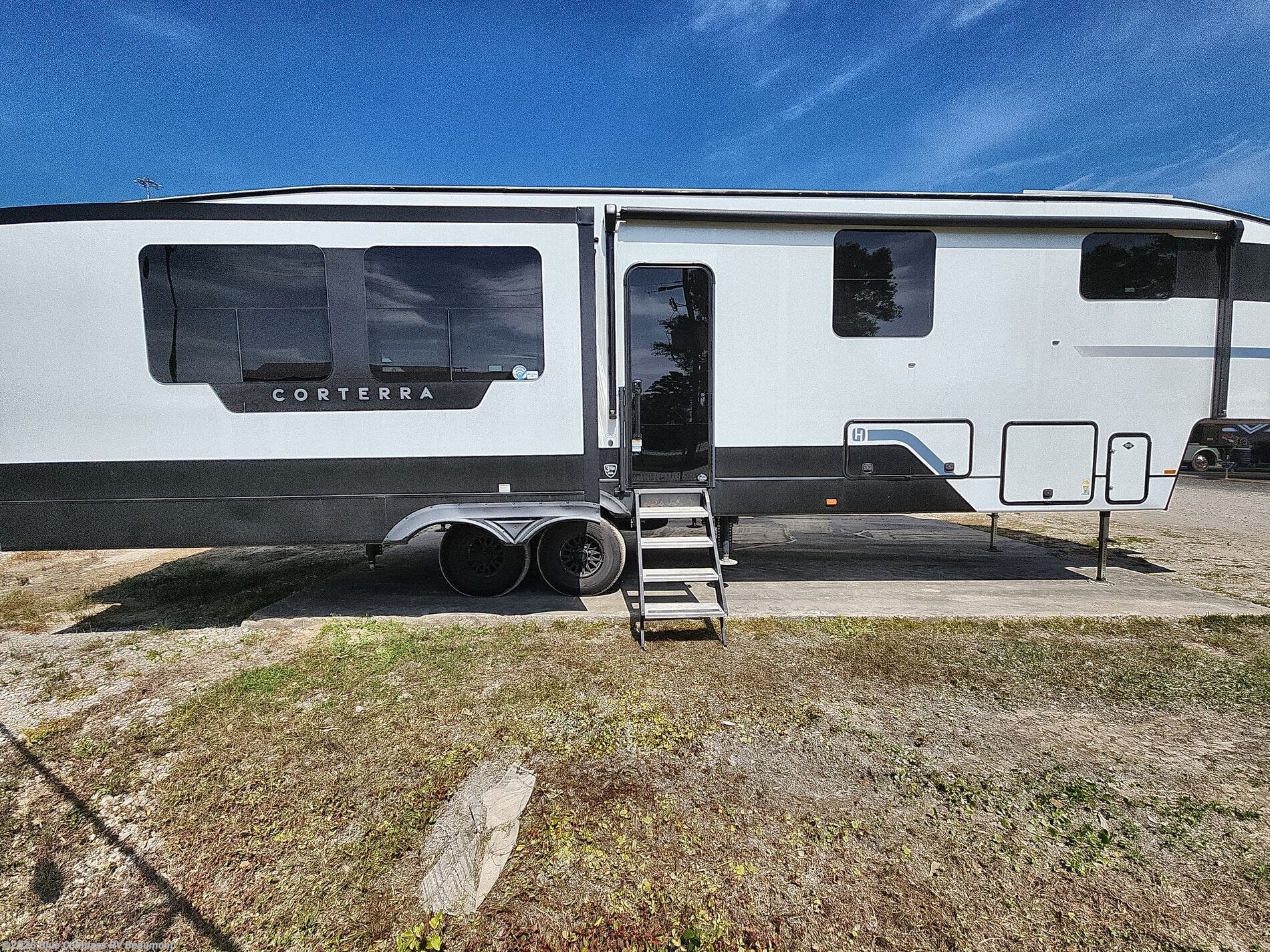 Explore the open road with any one of these Heartland Corterra fifth wheels! They are built with a 8" I-beam, Azdel Onboard composite sidewalls, and a heated and enclosed underbelly to protect your unit's vitals. The Vault XL and color coded wiring makes it easy to navigate through it and the exclusive TRIO airflow AC system ensures maximum cooling to keep you cooled off on a hot summer day. You can safely enter and exit the unit through the deluxe tinted glass entry door with Extended Safe-T entry grab handle. The interiors abound in luxury with hidden storage all throughout, a wine and/or coffee bar for entertaining, and a residential appliance package for home cooked meals everywhere you go. Come find your favorite one today!
