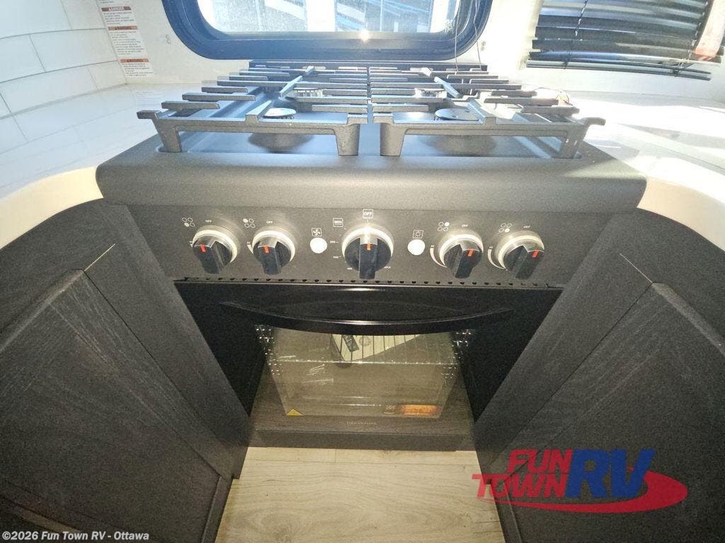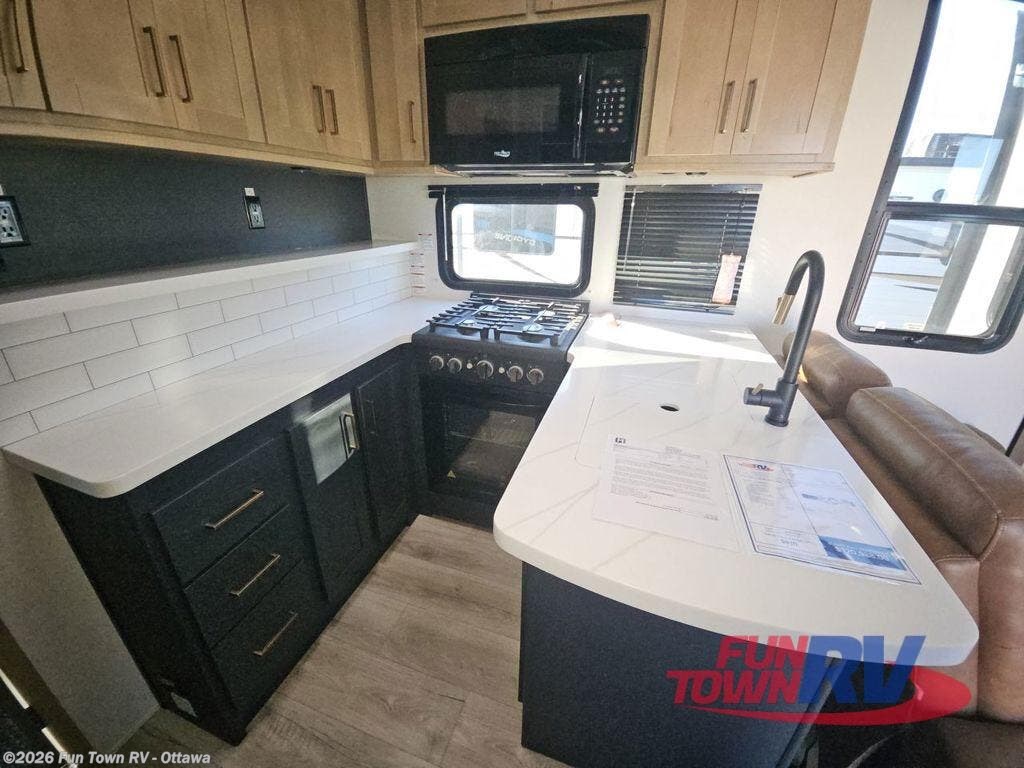 Everyone will have a comfortable place to sit in this toy hauler with the dual opposing theater seating slides and the third theater seating across from the 50" LCD HDTV! The 3,000 lb. weather resistant 8' ramp door makes it easy to load your toys into the 13' garage, and your guest can make this their bedroom at night. Here, you'll find an electric queen bed with a split bench seat/bed underneath, a half bath, plus a loft. There is even washer and dryer prep for wash day! The kitchen includes plenty of countertop space to prepare your best home cooked meals, or you can head outside to cook on the outdoor Grill N Go three burner griddle combo!