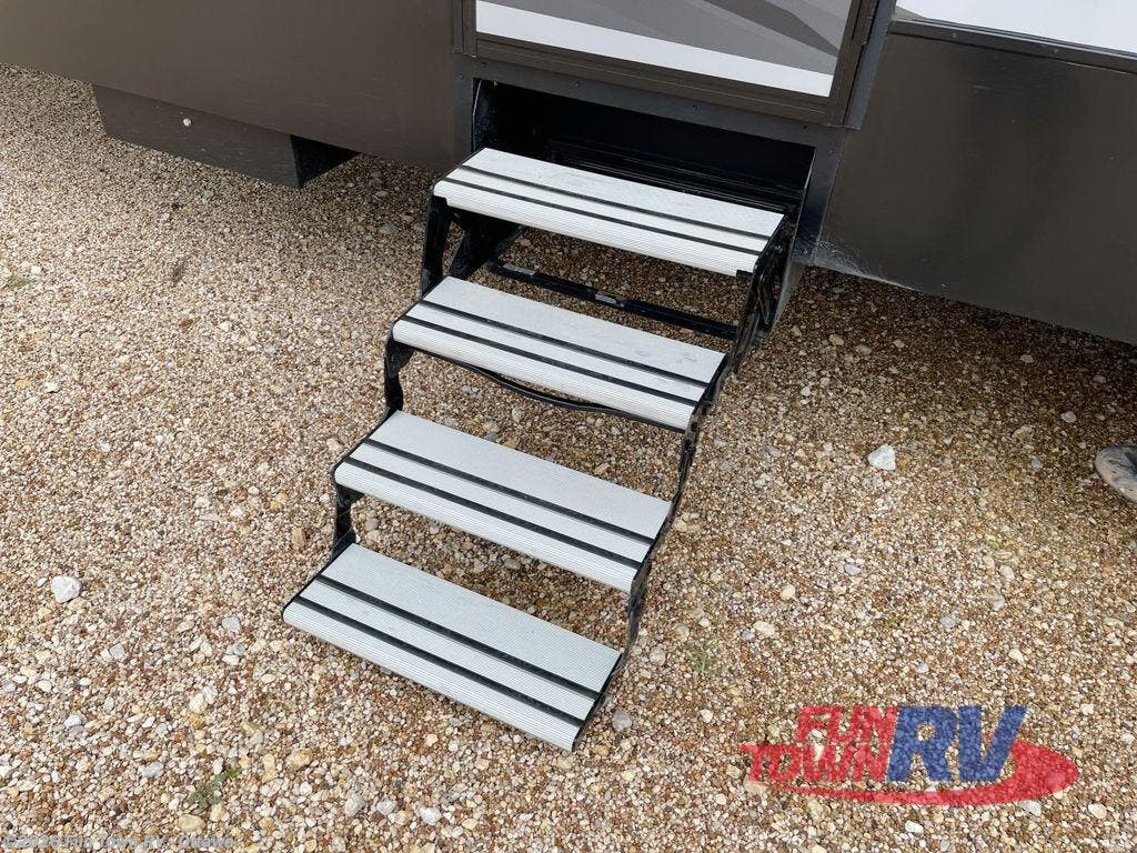 Satisfy your wanderlust with a Heartland Cyclone fifth wheel toy hauler! You won't have to sacrifice any luxury either with indulgent features like the king bedroom suite with an exclusive East to West bed tilt system with 30% more floor space, Stor-Mor three-sided access to the basement with 30% more storage capacity, and Step Caddy folding patio step for better stability as you enter or exit the patio. The industry first Grill and Go 25" residential pull out three burner griddle combo comes on models with an exterior kitchen for an easier cooking experience. Full height shaker cabinetry provides 25% more storage space so you can bring more camping necessities with you. If you like to dry camp longer then you will appreciate the industry's largest 150 gallons fresh water tanks. Come find the perfect model for you today!