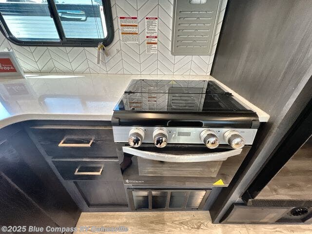 You'll love camping with friends and family in this dual entry travel trailer! One of the doors leads to the full bath so you can easily access it when you're visiting outdoors with friends. There are double-size bunks where the little ones or your guests can sleep, while you take the king bed in the front private bedroom. Everyone can meet in the combined kitchen and living room in the morning while the cook makes breakfast on the three burner cooktop. There is a booth dinette and sofa here for seating and sleeping space, although you might just want to sit under the 19' awning if breakfast is being made at the exterior kitchen!