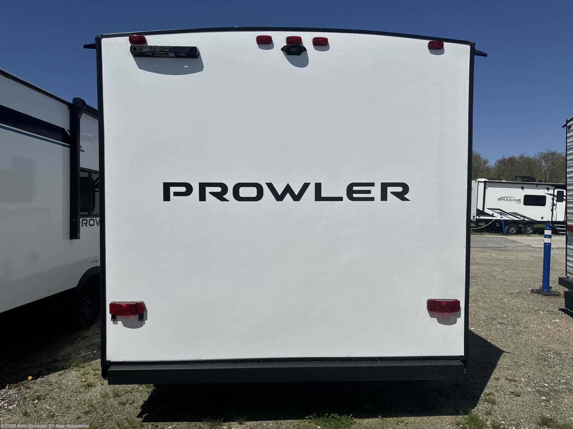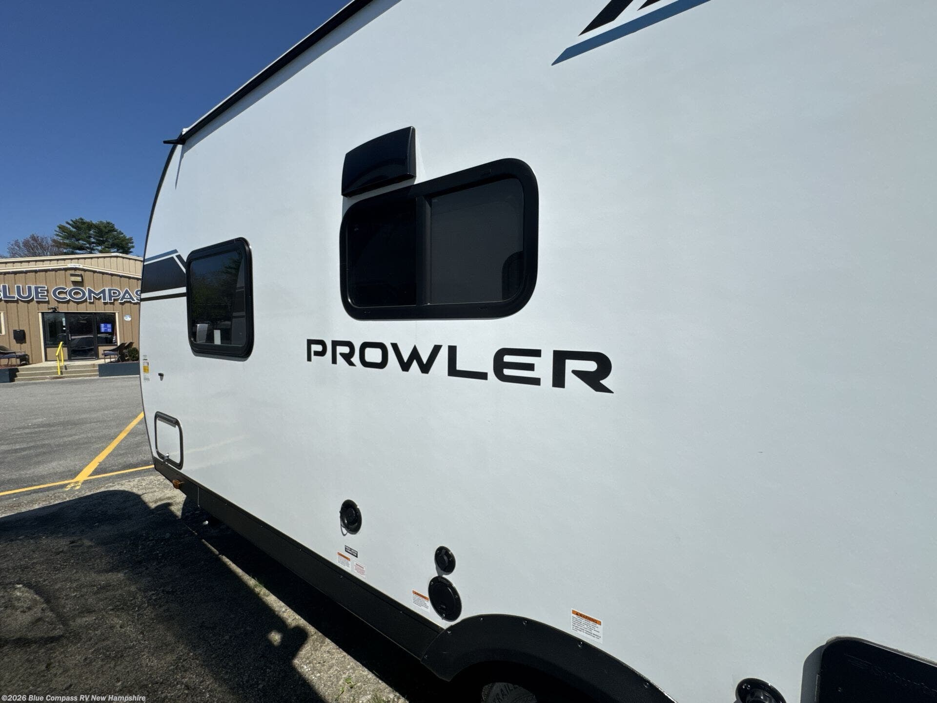 Get ready for comfortable and easy camping with the Prowler travel trailers by Heartland. The exterior features a power awning with LED lighting, stabilizer jacks, and diamond plate rock guard to help protect against rock and debris on the way to the campground. There is also a ladder and rear camera prep, an 8K roof mounted A/C, and a 20 lb. LP tank. Inside, you'll enjoy the dimmable LED ceiling lighting to keep your space well lit, and the on-demand water heater will provide endless hot showers.