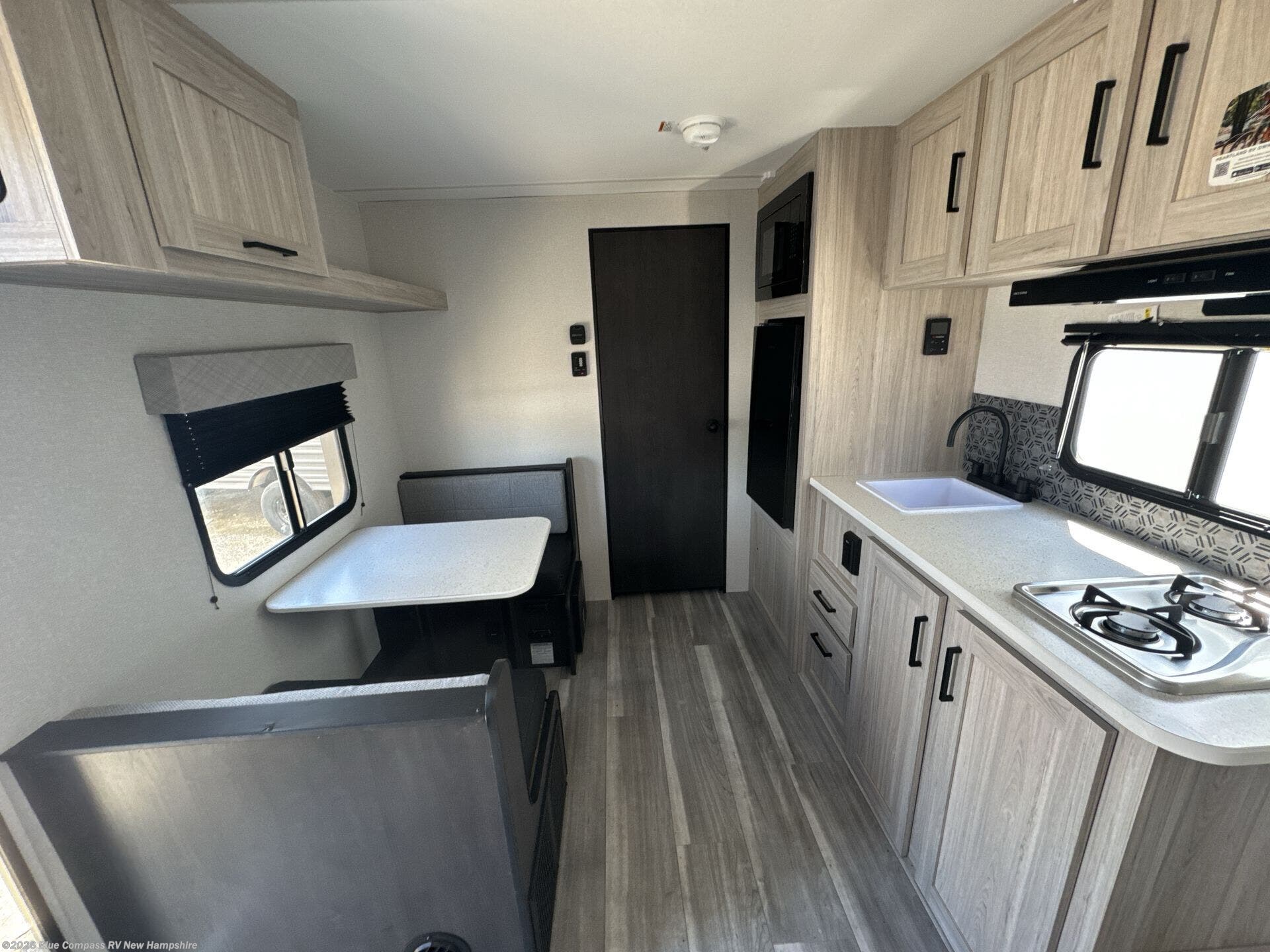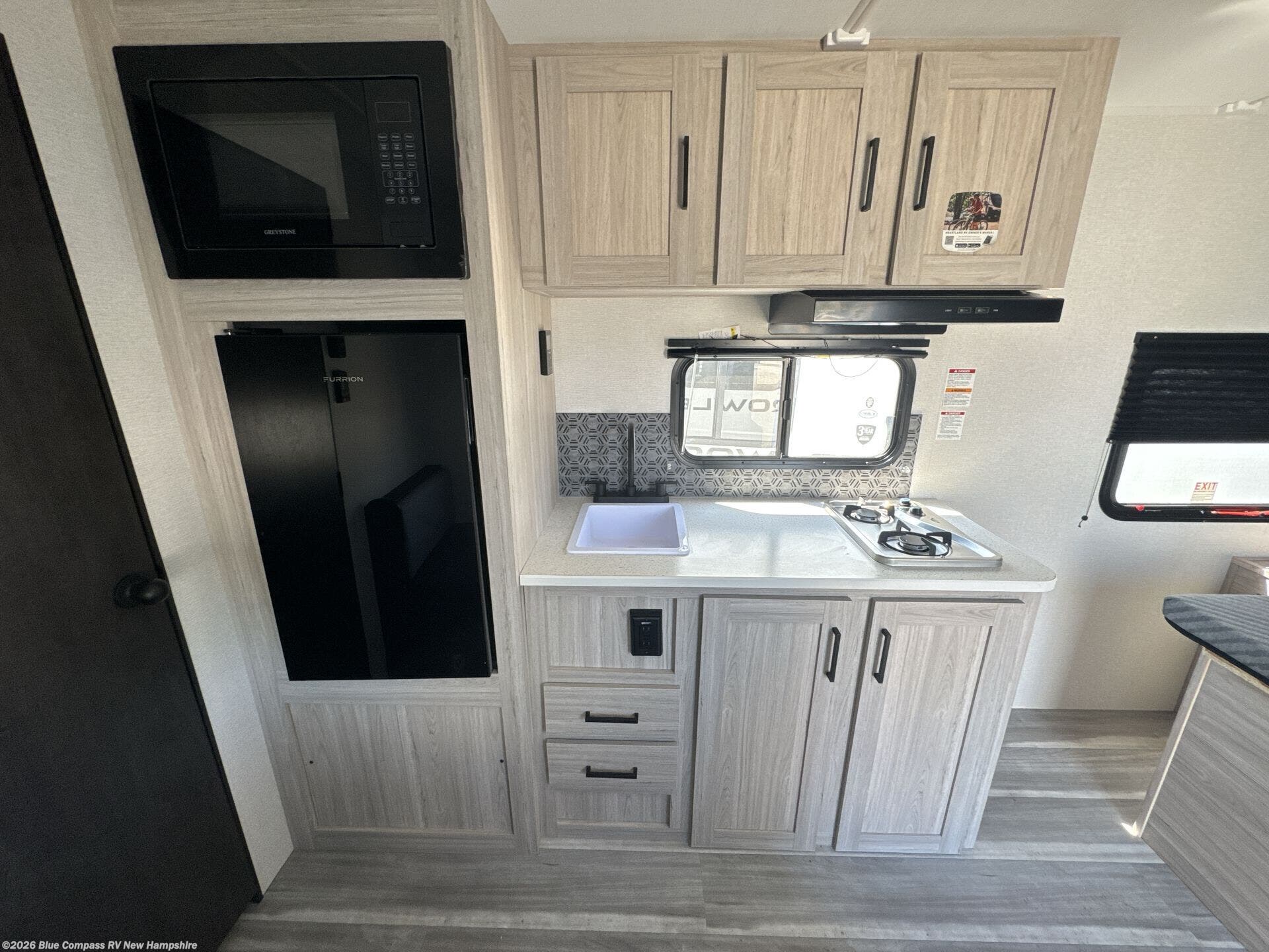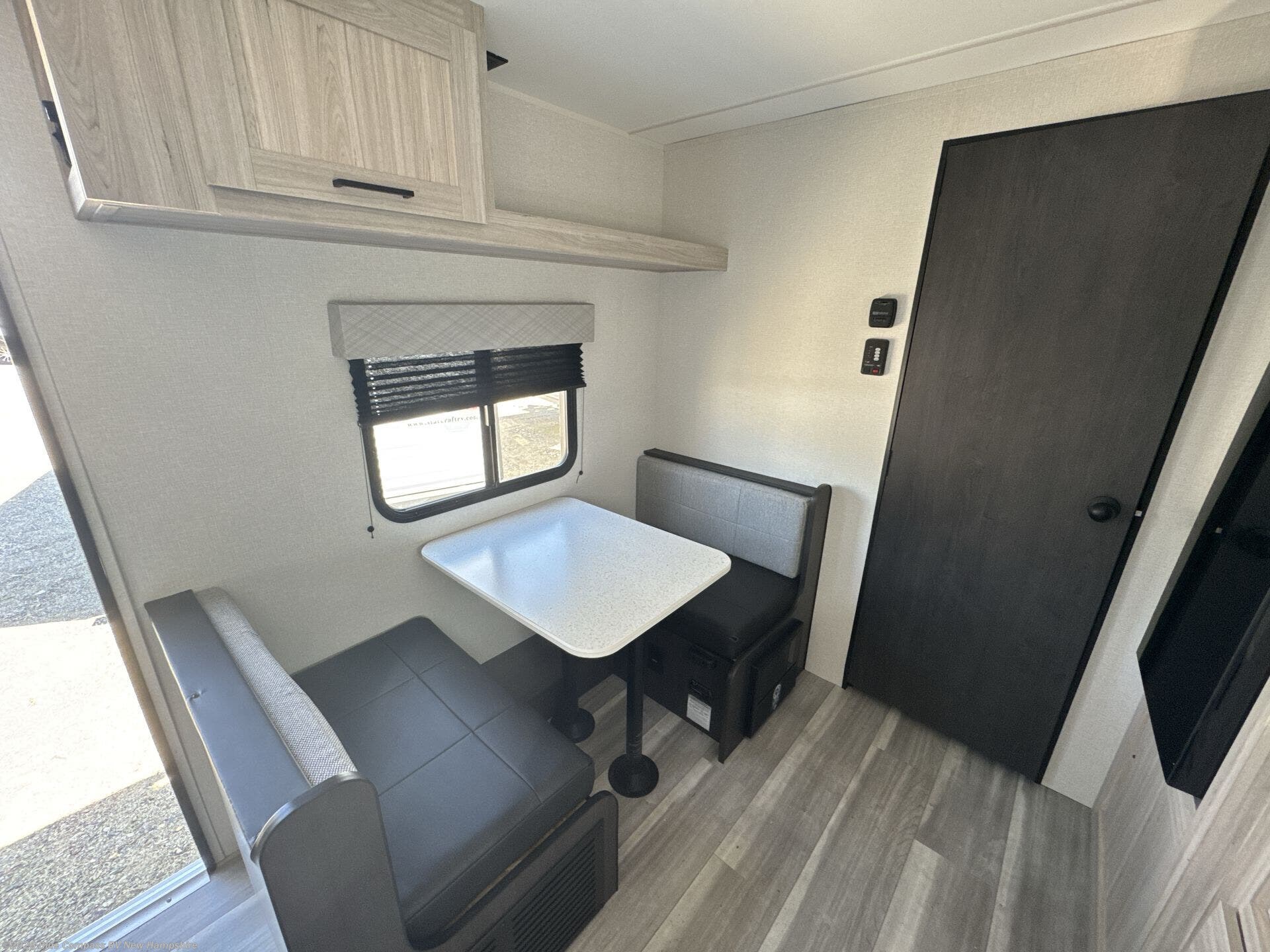 You'll love every minute spent in this travel trailer that can sleep five each night. There are bunk beds towards the back right beside the private bath for easy nighttime use. The queen bed up front will provide a great night's rest, and the booth dinette can double as dining and sleeping space. A two burner cooktop will let you cook meals each day, and there is a 3.3 cu. ft. 12V refrigerator for perishables.