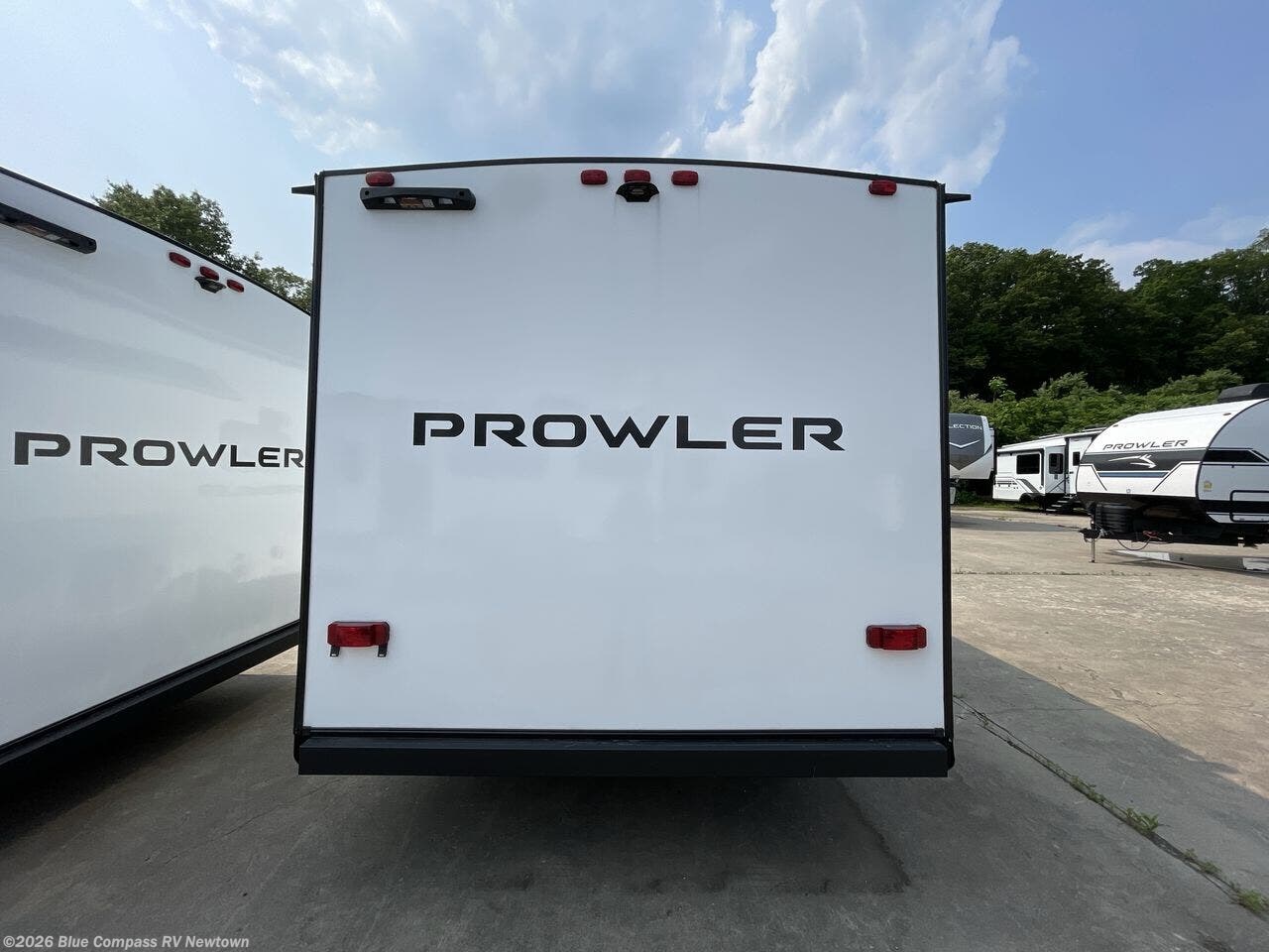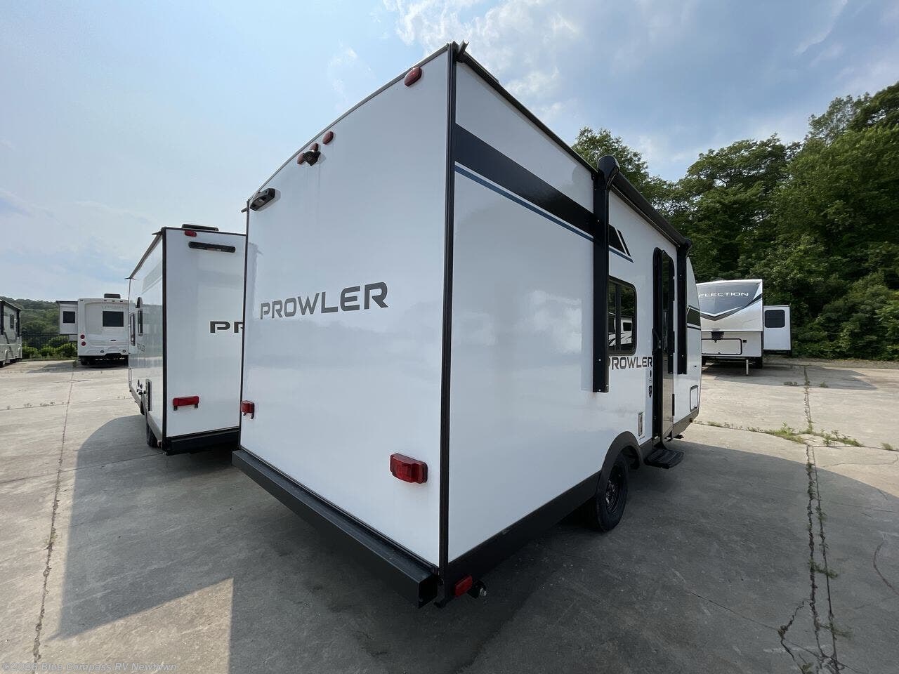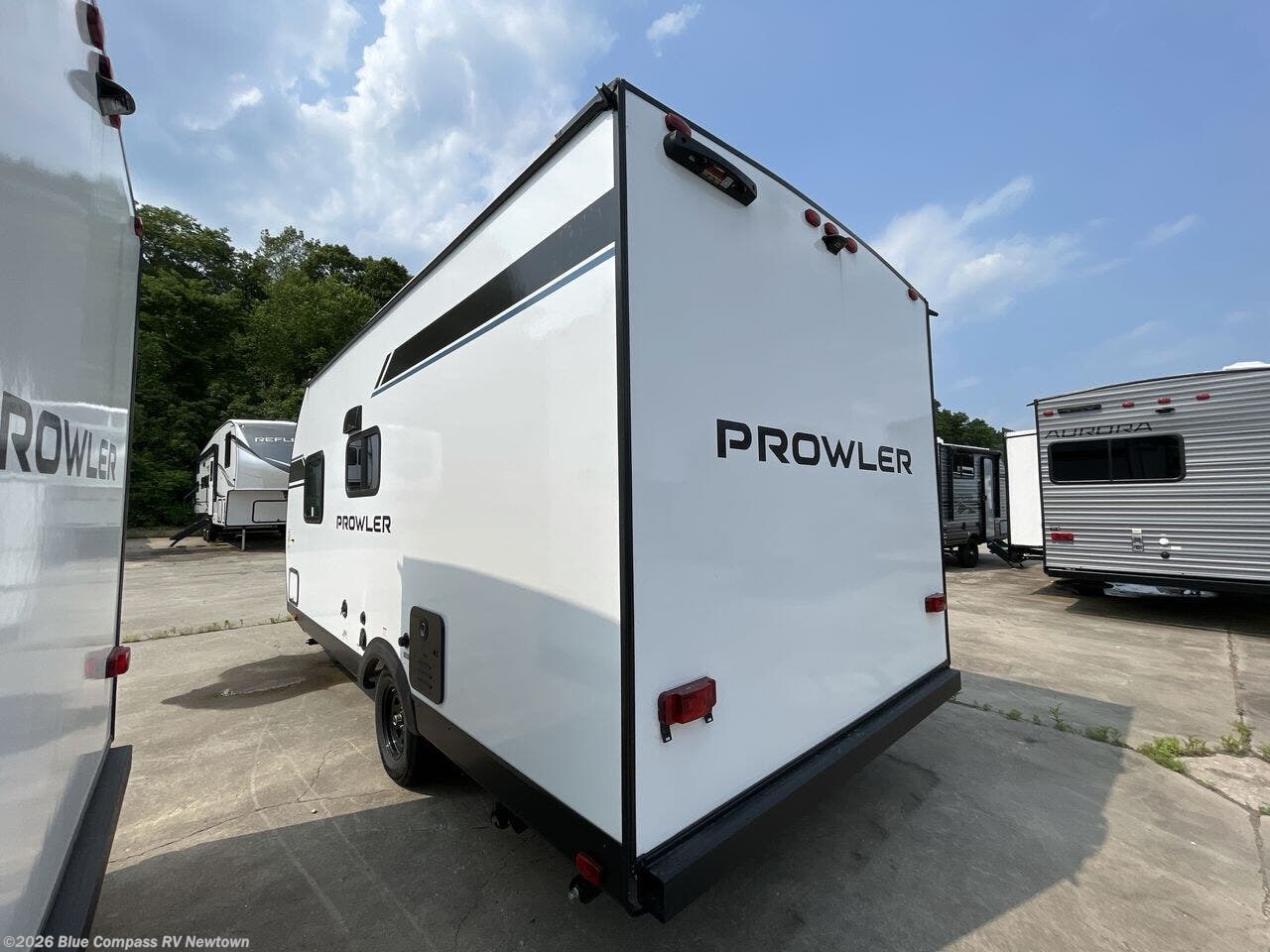 Get ready for comfortable and easy camping with the Prowler travel trailers by Heartland. The exterior features a power awning with LED lighting, stabilizer jacks, and diamond plate rock guard to help protect against rock and debris on the way to the campground. There is also a ladder and rear camera prep, an 8K roof mounted A/C, and a 20 lb. LP tank. Inside, you'll enjoy the dimmable LED ceiling lighting to keep your space well lit, and the on-demand water heater will provide endless hot showers.