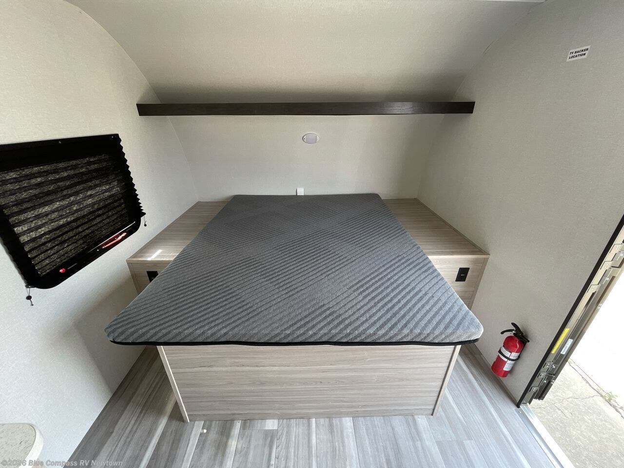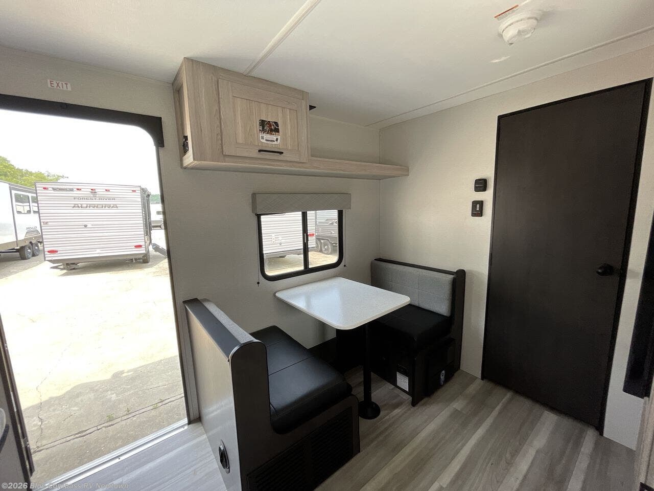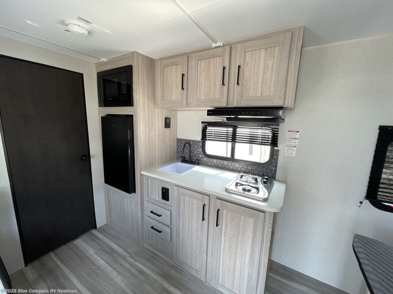 You'll love every minute spent in this travel trailer that can sleep five each night. There are bunk beds towards the back right beside the private bath for easy nighttime use. The queen bed up front will provide a great night's rest, and the booth dinette can double as dining and sleeping space. A two burner cooktop will let you cook meals each day, and there is a 3.3 cu. ft. 12V refrigerator for perishables.