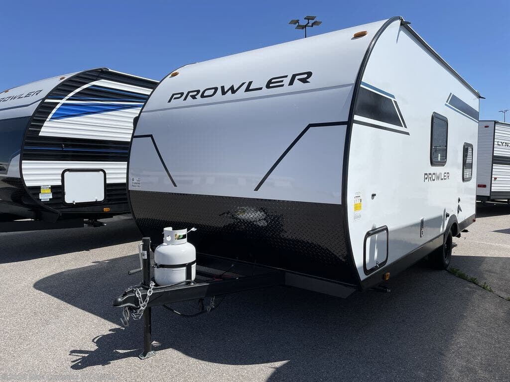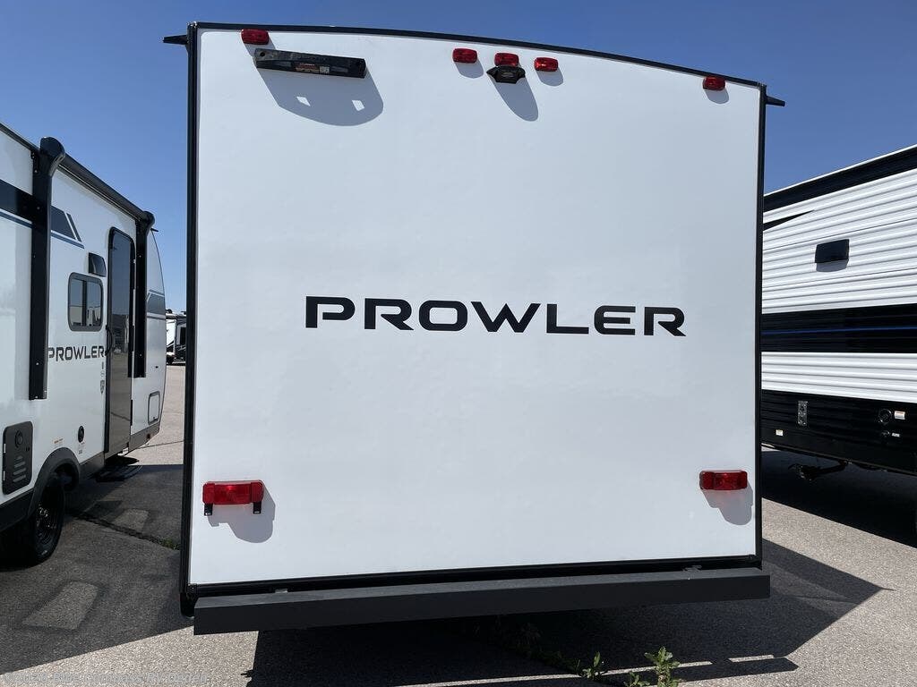 Get ready for comfortable and easy camping with the Prowler travel trailers by Heartland. The exterior features a power awning with LED lighting, stabilizer jacks, and diamond plate rock guard to help protect against rock and debris on the way to the campground. There is also a ladder and rear camera prep, an 8K roof mounted A/C, and a 20 lb. LP tank. Inside, you'll enjoy the dimmable LED ceiling lighting to keep your space well lit, and the on-demand water heater will provide endless hot showers.