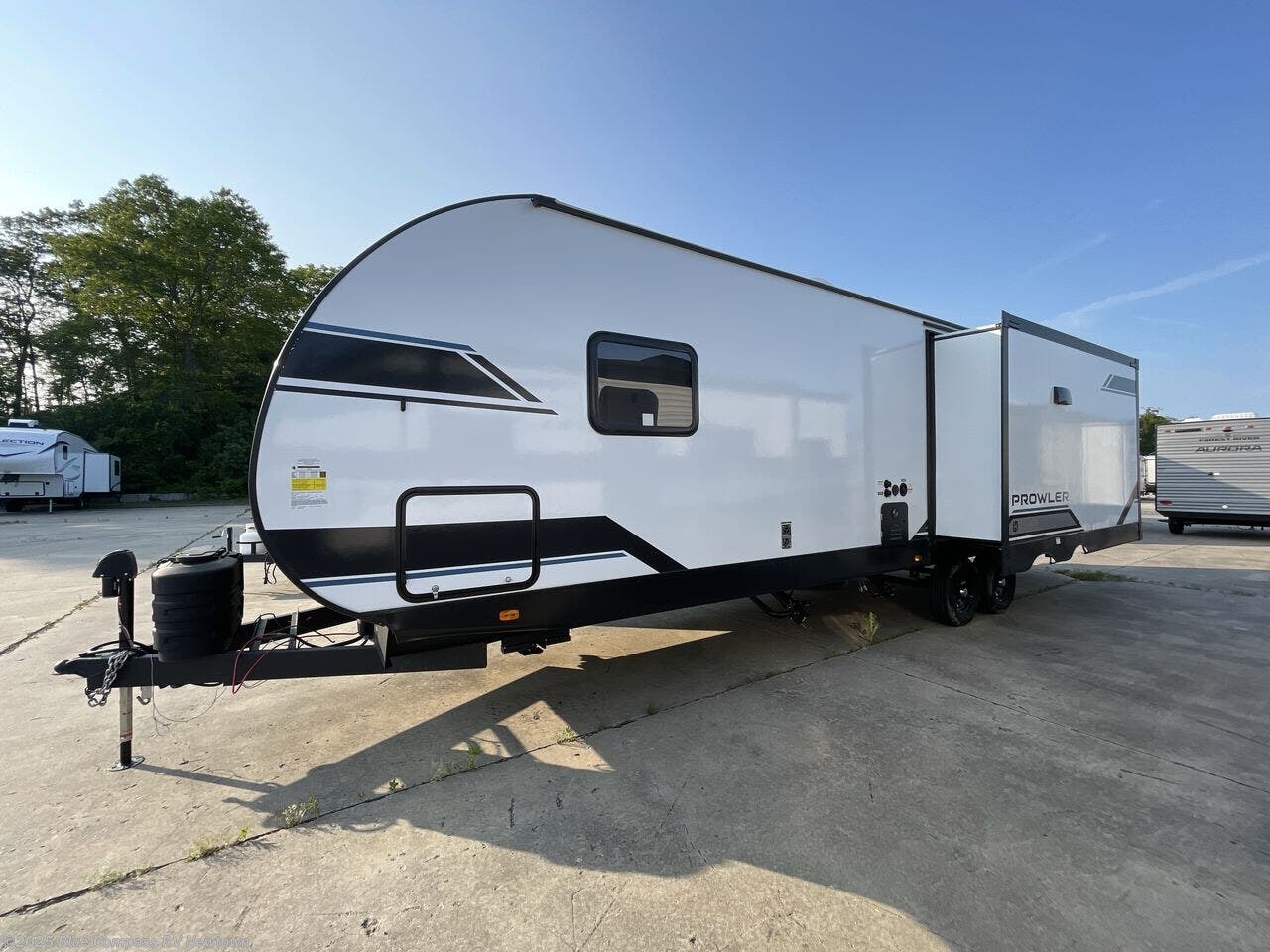 Get ready for comfortable and easy camping with the Prowler travel trailers by Heartland. These models feature durable construction with a performastructure aluminum front wall, a cambered structural steel I-beam frame, and a fully walkable roof. The MEGA bright pass-through storage features 52 cu. ft. of exterior storage with mega sized access doors, LED lights, and a finished interior to keep your gear secure. You'll fall in love with the at-home kitchen the includes Duralast countertops, a residential refrigerator, plus a stainless steel double bowl undermount sink for easy clean-up. These travel trailers also feature panoramic windows, an EZ clean interior, USB charging ports throughout, and many more comforts! Don't let the Prowler travel trailers slip away. Don't let the Prowler travel trailers slip away. Choose your favorite floorplan today!