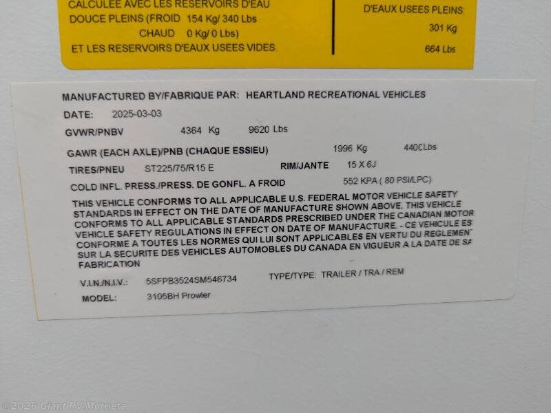 Cruise in timeless elegance with the 2025 Heartland Prowler 3105BH Travel Trailer at Giant RV in California! This refined 35’5” trailer, crafted for adventure-seekers, boasts lightweight Azdel® sidewalls, ideal for families on weekend getaways or extended trips, sleeping up to 10.