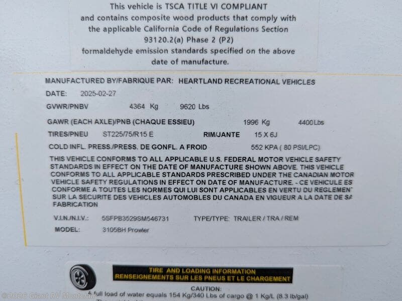 2025 Heartland Prowler 3105BH Specifications