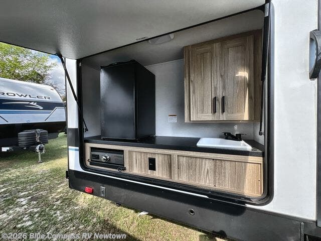 Get ready for comfortable and easy camping with the Prowler travel trailers by Heartland. These models feature durable construction with a performastructure aluminum front wall, a cambered structural steel I-beam frame, and a fully walkable roof. The MEGA bright pass-through storage features 52 cu. ft. of exterior storage with mega sized access doors, LED lights, and a finished interior to keep your gear secure. You'll fall in love with the at-home kitchen the includes Duralast countertops, a residential refrigerator, plus a stainless steel double bowl undermount sink for easy clean-up. These travel trailers also feature panoramic windows, an EZ clean interior, USB charging ports throughout, and many more comforts! Don't let the Prowler travel trailers slip away. Don't let the Prowler travel trailers slip away. Choose your favorite floorplan today!